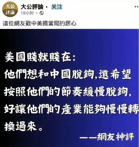 美国的想法是让中国脱钩慢一点,让美国的产业有重建的时间!但美国能卡中国的就立刻停