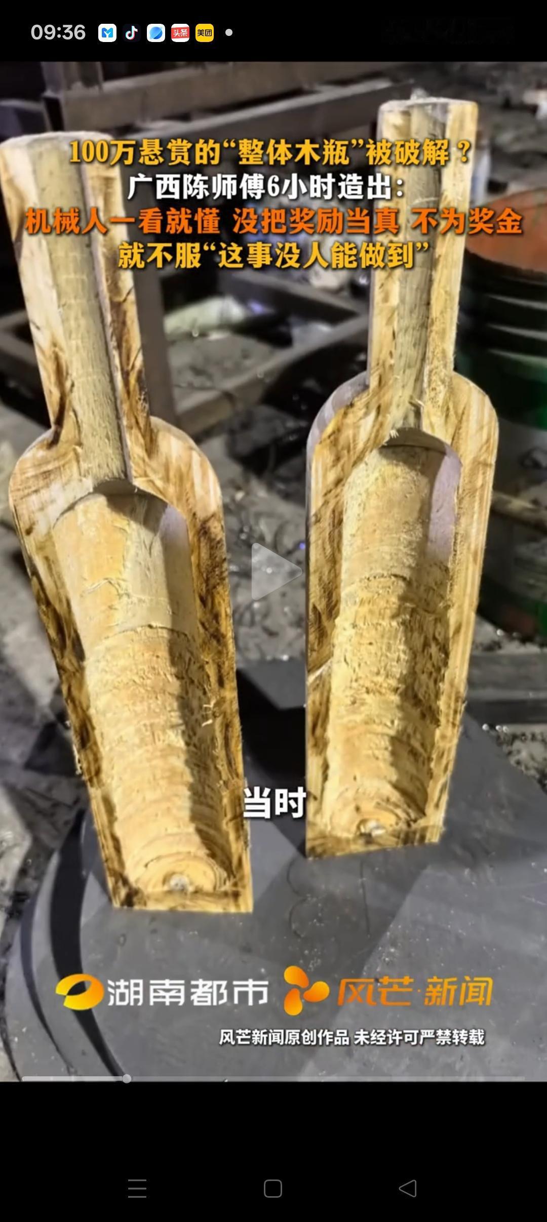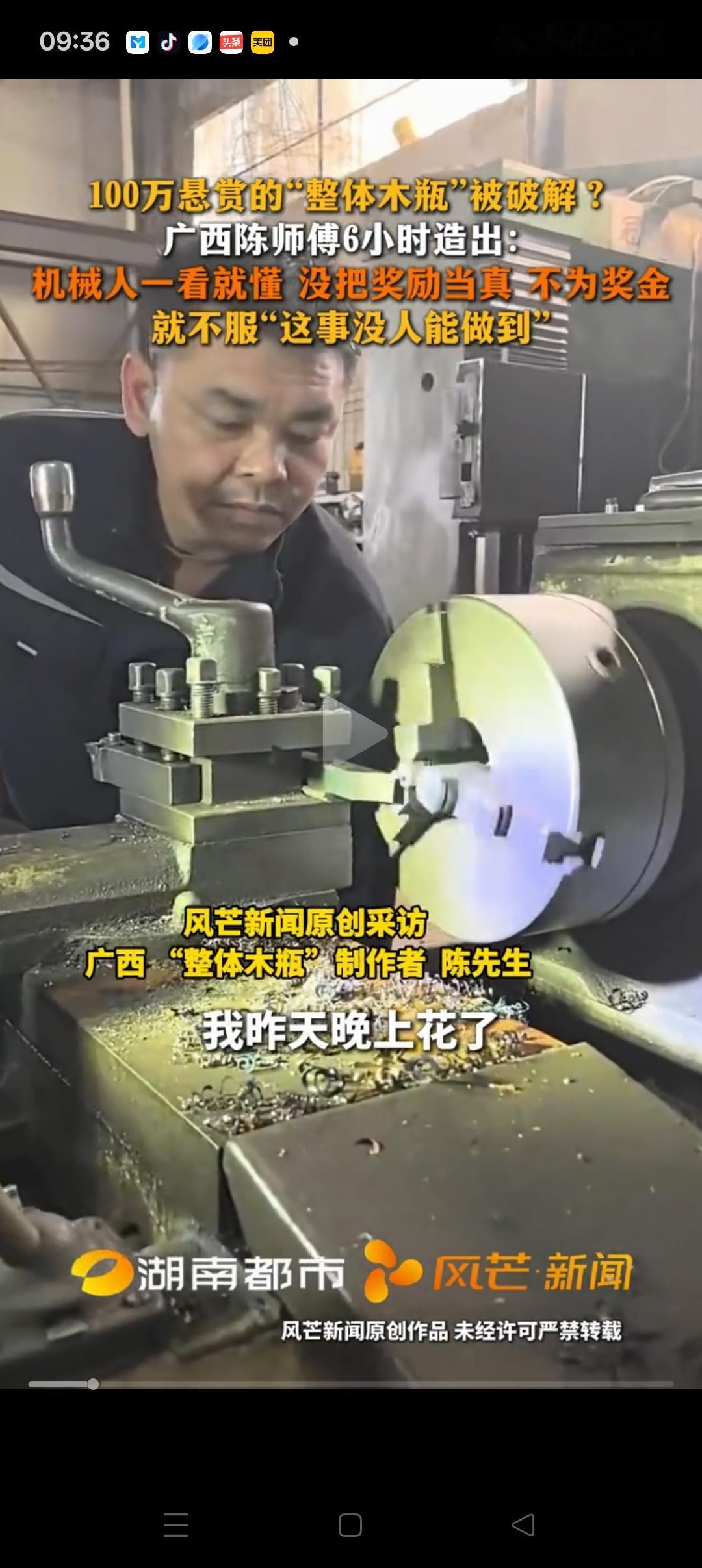 一觉醒来,“木瓶哥”哭晕在厕所! 没想到,他研究了3年,花了很多钱才做出的木瓶。 就在他悬赏100万,6个小时后就有人做出来了! 这位大哥也说了,这并不是一个多难的事情,也没有想过要奖金,只是想证明一下,木瓶哥有点口嗨了。 本人也是从事这个行业的,说实话这个技术真不是很难,一看就知道。 至于“木瓶哥”为什么会这么说,估计还是自己闭门造车,对外面了解的不多,有点想当然。 真想让他拿出100万是基本不可能了,只希望他下次别把话说的太满,谦虚一点[捂脸][捂脸]
