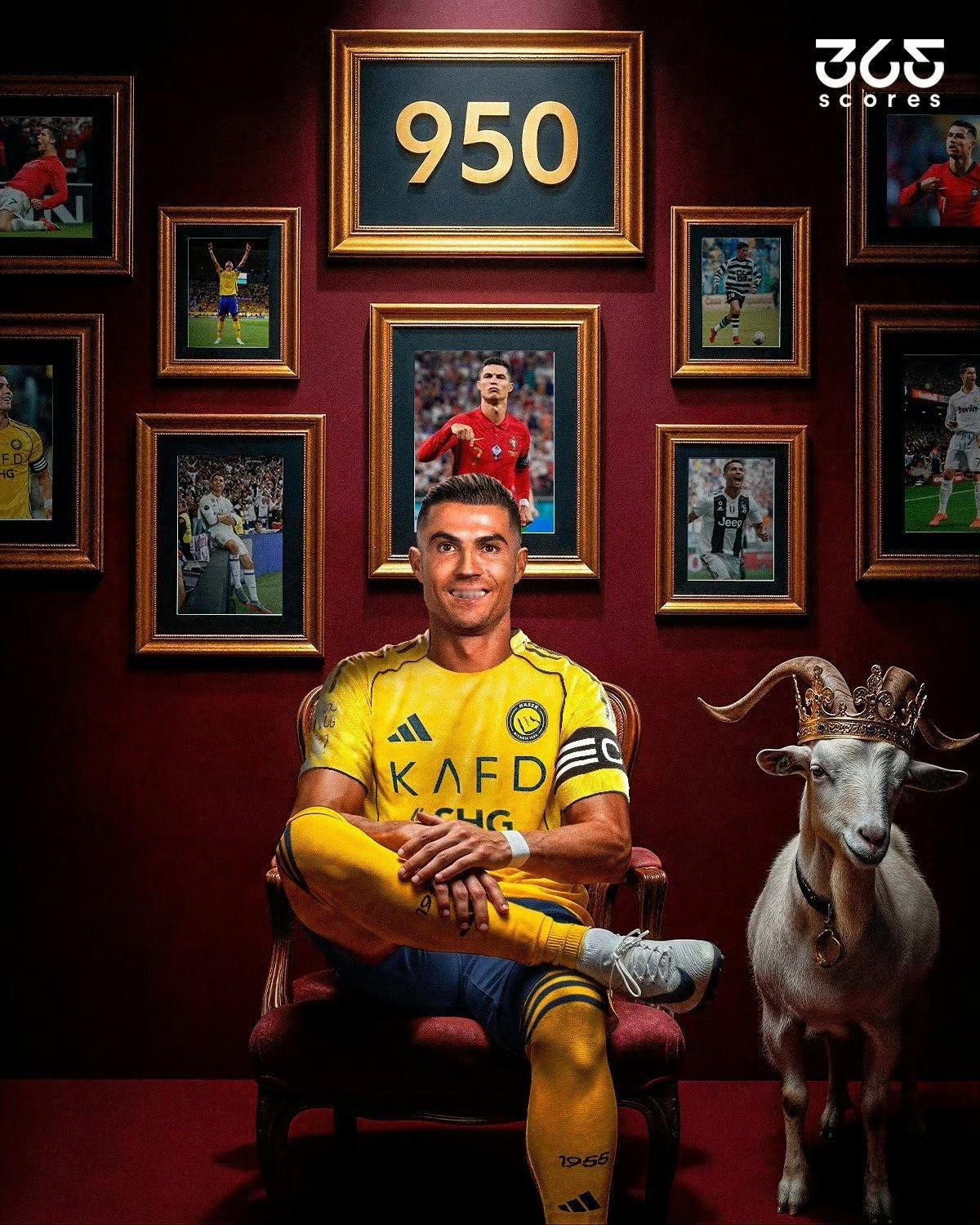 刚看到新闻,C罗又刷屏了。就在10月26日上午,沙特联赛,利雅得胜利客场2-0赢球,这位40岁的老将第88分钟一脚垫射,直接把职业生涯总进球数踹到了950个。 说实话,这个进球来得挺有意思。对手哈森姆摆了一整场铁桶阵,利雅得胜利怎么攻都差口气,结果最后时刻一个快速反击,队友韦斯利右路传中,C罗瞄着门将站位推了个弹地球,皮球蹭地钻进网窝。 这球一进,比赛彻底锁定胜局,球队也顺势拿下联赛六连胜。 翻翻数据更吓人。950球里,右脚进了609个,左脚183个,头球156个,连点球都罚进了178个,成功率接近85%。 更狠的是,他30岁之后居然比30岁前还多进了24球,今年自然年已经捞了33球,连续18年进球30+。 现在他和梅西的进球数差距拉大到64球,而距离1000球大关只剩50球。按这效率,明年年中我们可能就要见证足球史上第一个千球先生。 想起两年前,C罗对哈森姆踢进了850球,现在又是同一对手成了950球的背景板。 赛后他说自己“永远渴望更多”,这话听着像场面话,但放他身上真一点不虚。 点球会踢飞,肌肉会老化,可这家伙就是能一次次用下一脚射门把质疑踹碎。 有时候觉得,C罗早就不只是在踢球了。他像在给所有人上课——年龄、瓶颈、舆论,这些玩意儿根本框不住一个真想赢的人。千球里程碑就在眼前,而这部由死磕精神写成的史诗,还在加速更新。