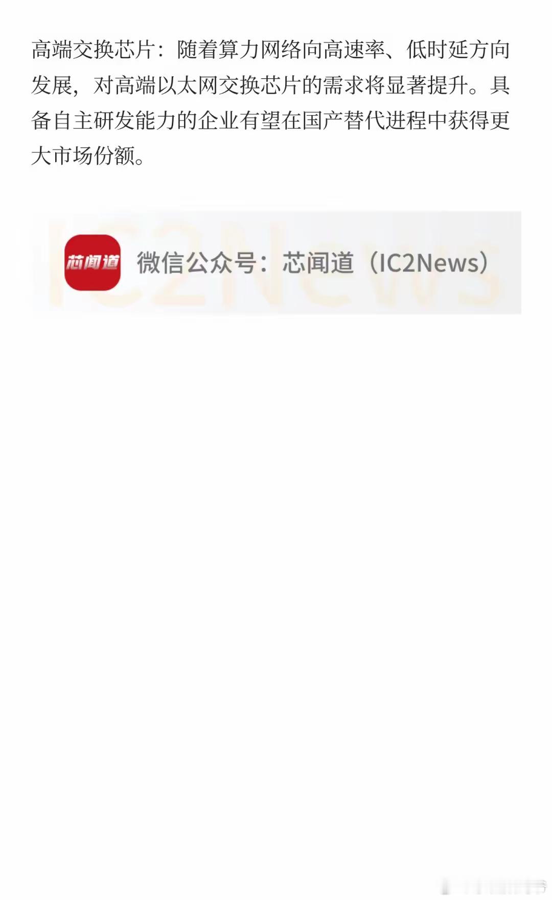 光通信设备、算力网络基础设施、高端交换芯片相关产业链有望迎来订单增长期。
