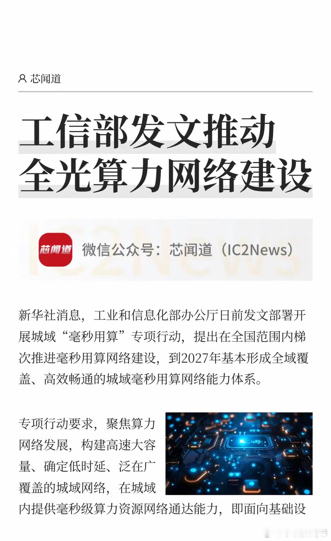 工信部发文推动全光算力网络建设