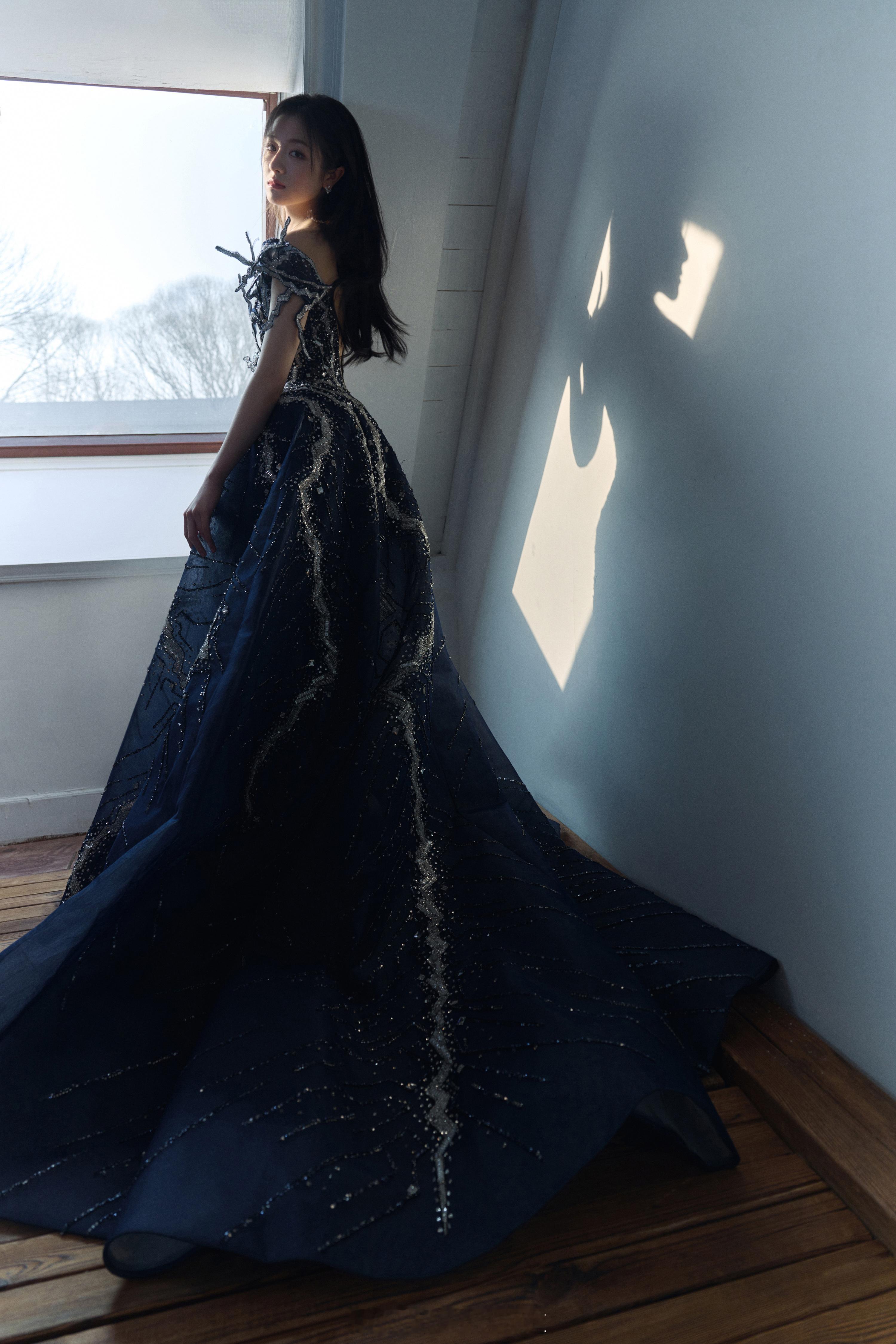 赵露思高定单肩裙
