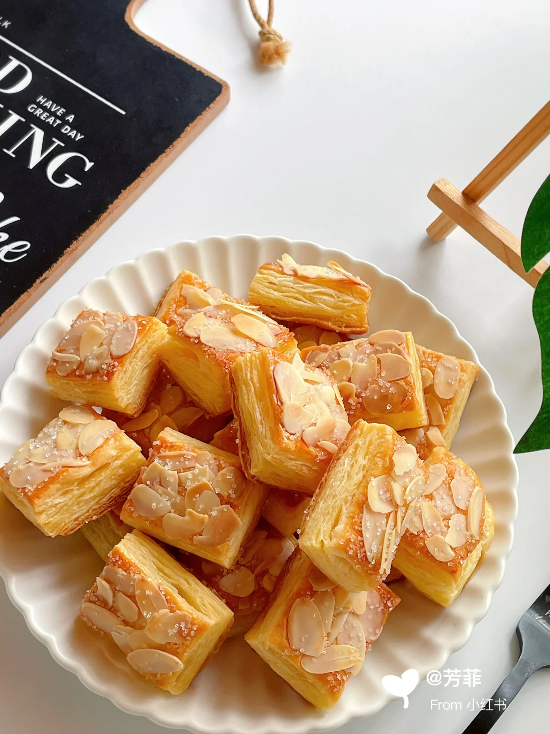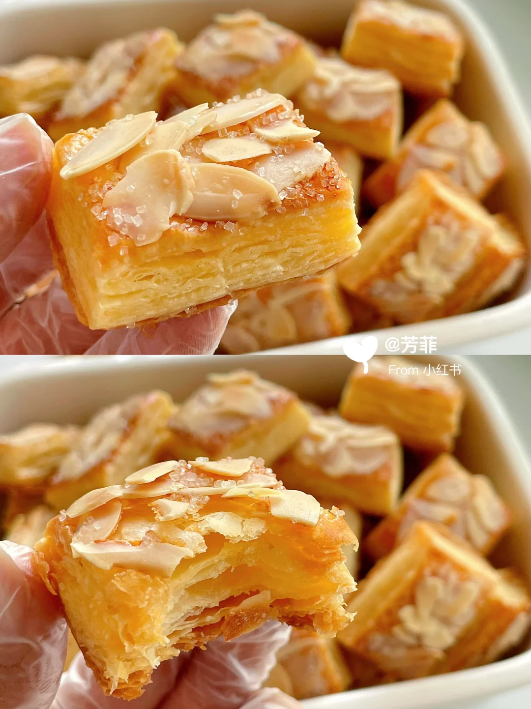 🌈烤好的扁桃仁千层酥出炉完全放凉,就变酥脆了.👉🏻层次分明一口香酥,浓郁奶香好吃到停不下来!!这天气开酥正合适,快安排上吧
