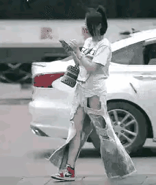 这样的裤子只有有钱人才能穿的出来,这个女子用衣衫褴褛来形容一点都不过分,虽然她穿的衣不蔽体,但是价格不菲。 女子边走边看手机,殊不知,旁边的人都在看她,不看别的,就是她穿的那条裤子。 女子穿的裤子已经不能局限为破洞裤了,之所以称其为裤子,是因为它只比短裤长一些,就像两条破布挂在腿上。 能生产出这样裤子的厂家也是没谁了,能把这样的破布挂在腿上就出门就更厉害了。 别看这条裤子没有多少布料,破破烂烂,但是价格一定不便宜,