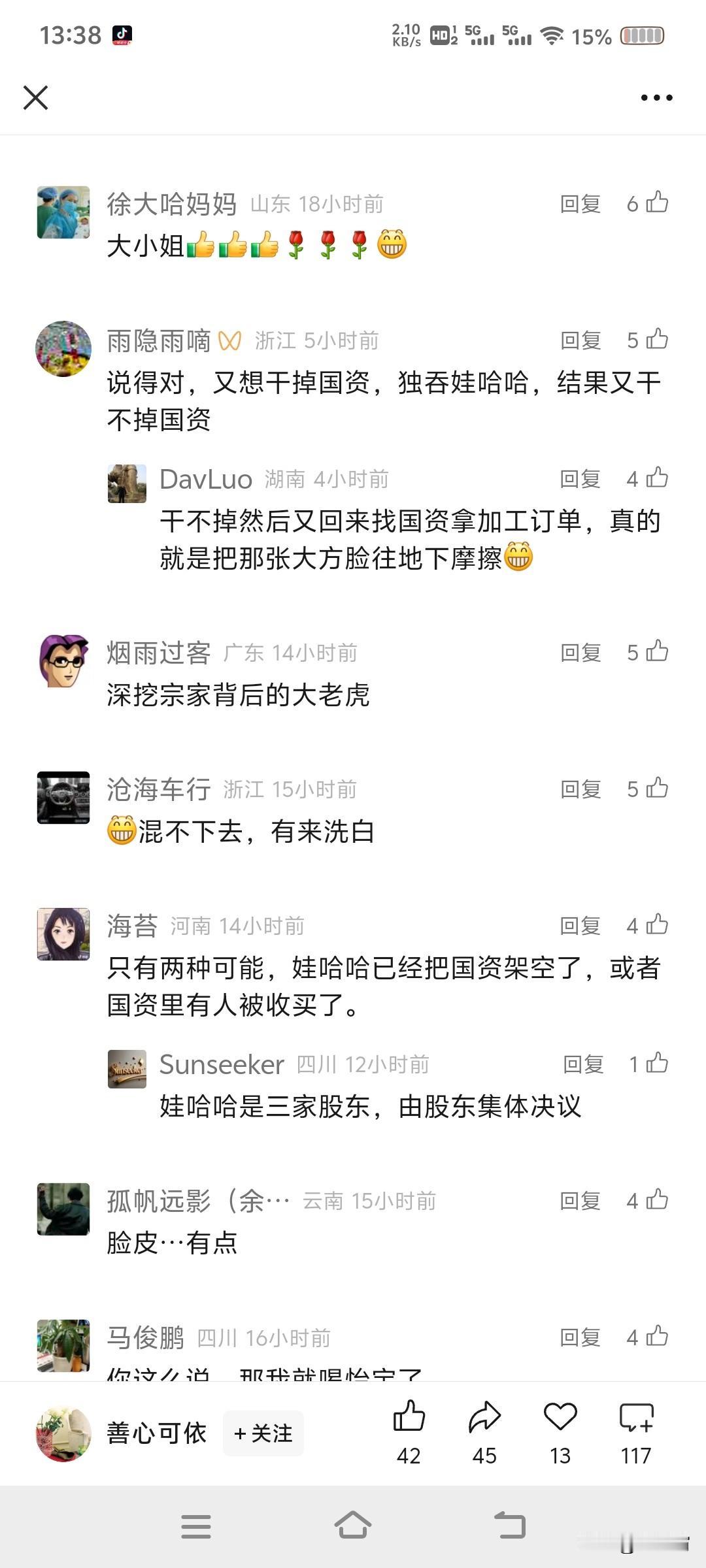 反转之大反转!宗馥莉重启娃哈哈,更多细节曝光 41天,说停就停!“娃小宗”看着夭折,实则是宗馥莉一记狠招。她根本不是败了,而是用自己当诱饵,把那些藏头露尾的反对派全逼了出来——市场什么嘴脸?股东什么心思?连亲叔叔都藏不住了。娃哈哈是杭州的宝贝,国资绝不会坐视不管。这场棋,换谁都扛不住,只有她,跟父亲拼了二十多年,手里有牌、心里有底。父亲不愿撕破的面,她来撕。现在,那些想自立山头的长辈,怕是要傻眼了。“清君侧,立正名”,改革的刀已经出鞘。一个女人,顶着家丑和压力,硬生生稳住千亿帝国,真的不容易!最好的选择就是,双方握手言和,回到合作共赢的道路上来。宗馥莉还是要寄生在娃哈哈这棵大树之下。而娃哈哈呢?也可以接纳宏胜公司的产能供应。终究是那句话:只有和气,才能生财!如果你也佩服这份魄力,点个赞,转发支持一下!娃哈哈宗馥 宗馥莉公主 娃哈哈馥莉 娃哈哈宗公主 [免责声明] 文章的时间、过程,图片均来自于网络,文章旨在传播正能量,均无低俗等不良引导,请观众勿对号入座,并上升到人身攻击等方面。观众理性看待本事件,切勿留下主观臆断的恶意评论,互联网不是法外之地。本文如若真实性存在争议,事件版权或图片侵权问题,请及时联系作者,将予以删除。谢谢!