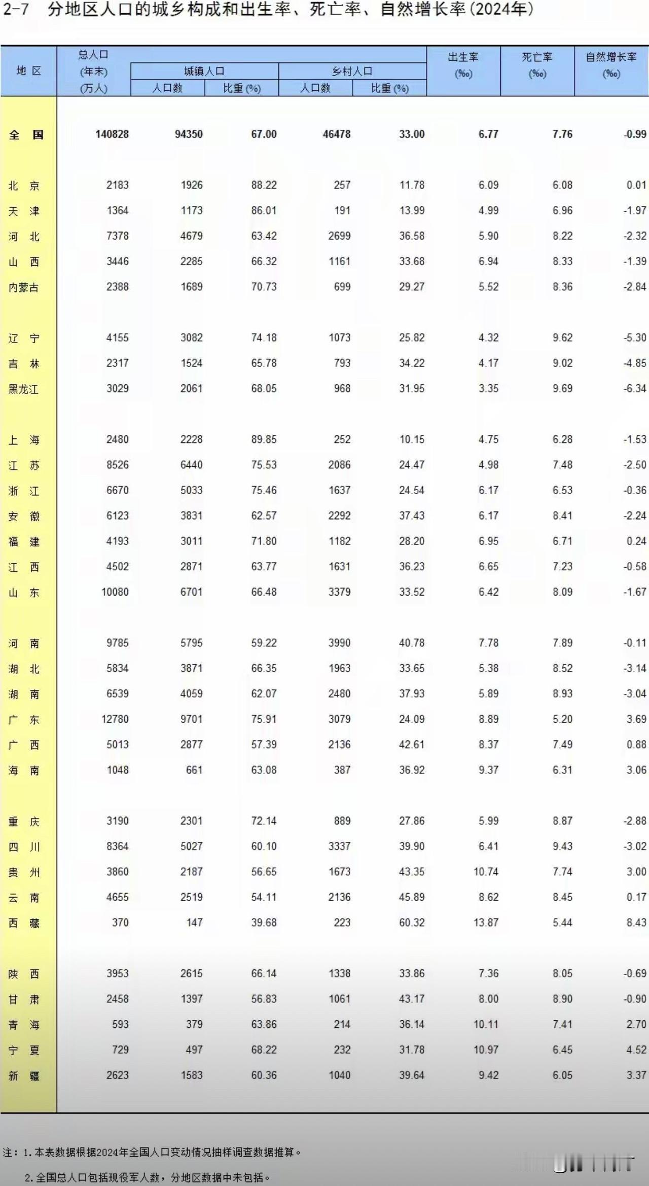全国出生率地图曝光!这些省份最能生娃 最新数据公布,全国人口出生率呈现“西高东低”格局,有10个省份的出生率超过8‰,成为生娃主力军。 2024年,全国出生人口为954万人,比2023年增加52万人,人口出生率为6.77‰,比上一年提升了0.38个千分点。这一细微变化背后,藏着各省份生娃意愿的巨大差异。 哪些地方的年轻人更愿意生孩子?数据给出了清晰答案:14个省份的出生率高于全国平均水平,其中10个省份出生率超过8‰,它们分别是西藏、宁夏、贵州、青海、新疆、海南、广东、云南、广西和甘肃。 从地理分布看,这些“生娃大省”主要集中在西部地区和华南地区。而广东显得尤为特别,它不仅是经济大省,也在生娃榜单上名列前茅。 具体来看,去年出生人口最多的10个省份,分别是广东、河南、山东、四川、河北、江苏、广西、贵州、浙江、云南。这十大省份的出生人口合计占全国比重达到了58.6%,接近六成,堪称中国生娃的“主力军”。 仔细观察这份榜单,我发现一个有趣现象:经济发达地区生娃少,相对落后地区生娃多! 比如,作为经济第一大省的广东,能在生娃榜上名列前茅,确实出乎很多人意料。而西部省份虽然经济相对落后,但生娃积极性却很高。 为什么会有这样的反差?专家分析,城镇化程度、教育水平、生活成本都在影响着年轻人的生育决策。在经济发达地区,高昂的房价、教育成本和工作压力,让许多年轻人对生孩子望而却步。 有研究指出,全国家庭0-17岁孩子的平均养育成本高达48.5万元,城镇家庭更达到63万元。这笔巨大开销,足以让不少年轻夫妻反复掂量。 数据显示,中国结婚登记人数已连续多年下滑,2021年跌破800万对大关。年轻人婚都不结了,何谈生孩子? 生育不只是个人选择,更是社会现象,看着这些数据,我在想:什么时候,年轻人才能不再为“生不起、养不起”发愁?什么时候,生孩子不再是经济负担,而是幸福期待? 这些问题,值得每个人深思。