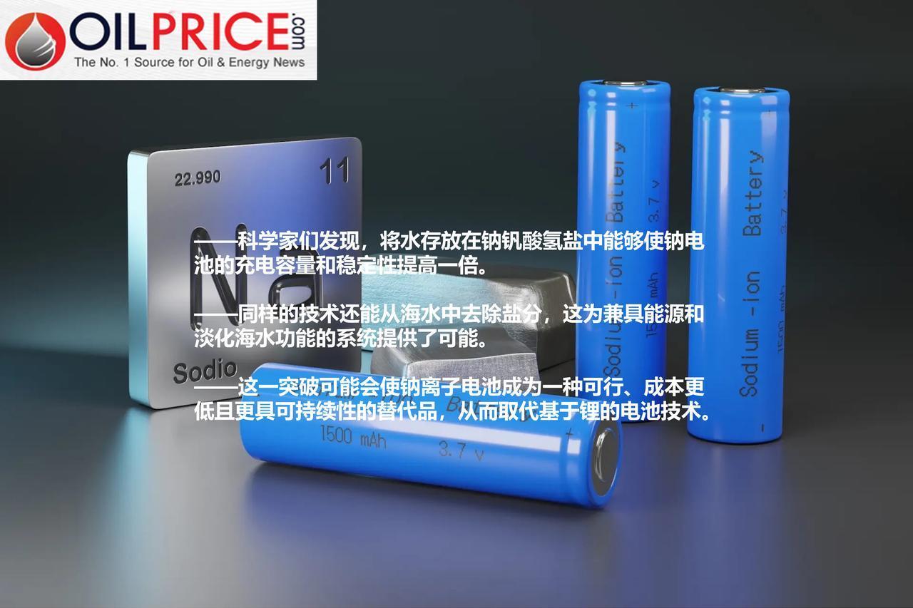 新型钠离子电池取得突破:充电量翻倍并能淡化海水 钠离子电池背后的这项技术如今又有了重大突破,这得益于其设计上的一个小小改进。萨里大学的科学家们发现,通过采用传统方法对纳米结构化的钠钒酸氢盐(NVOH)(一种现有的钠基材料)进行充电,电池不仅性能更佳,还能淡化海水,展现出令人惊讶且实用的双重功能。 通常情况下,科学家会去除 NVOH 中自然存在的水分,这是遵循常规做法的。但萨里大学的研究团队却测试了如果让这种材料保持其天然的、含水的状态会有什么结果。结果是,这种电池的充电量是常规型号的两倍,或者大约相当于市场上一些性能最佳的阴极的充电量。《Interesting Engineering》报道称,与传统的钠离子电池型号相比,这种新型 NVOH 型号“能储存更多的电荷,充电速度更快,并且在超过 400 次充电循环后仍能保持稳定。”这些发现已在科学出版物《材料化学杂志 A》上发表的一篇论文中进行了详细阐述。 “我们的研究结果完全出乎我们的意料,”萨里大学未来学者丹尼尔·康马克尔博士说道。“钒氧化钠这种物质已经存在多年了,通常人们会对其进行热处理以去除其中的水分,因为人们认为这会造成一些问题。我们决定挑战这一假设,结果却远远超出了我们的预期。” 这一令人惊讶的结果中的一部分在于,人们发现这种技术还能用于淡化海水。“能够在盐水中使用水合钒酸钠这一发现确实非常令人兴奋,因为它表明钠离子电池不仅能储存能量,还能帮助从水中去除盐分,” 康马克尔博士接着说道。“从长远来看,这意味着我们或许能够设计出利用海水作为完全安全、免费且丰富电解质的系统,同时在这一过程中还能产出淡水。” 这一重大突破对于蓬勃发展的电池储能行业具有极大的颠覆性潜力,因为它能够让钠离子电池在与目前占据市场主导地位的锂离子电池的竞争中更具竞争力。目前,锂离子电池为 70%的可充电设备提供动力,包括智能手机、电动汽车电池以及大规模电网储能设备等。 钠离子电池在研发领域已受到越来越多的关注,被视为锂离子电池的潜在替代品。钠离子电池在开发、设计和应用方面的突破不断涌现,但这些技术仍难以挑战锂离子电池的主导地位。由于锂具有出色的能量密度和在低温环境下表现良好的特性,锂离子电池已几乎普及开来。据《电动汽车世界》报道,这些特性使得这种金属“在高性能应用中不可或缺”。但锂离子电池也有其严重的缺点,包括严重的环境影响以及充满政治风险的供应链。 虽然锂具有某些关键特性使其成为电池领域的佼佼者,但钠也有其独特的优势,这可能使其成为下一个行业宠儿。“与锂相比,钠是电池更可持续的能源来源,”英国电池技术公司 Faradion 的首席执行官詹姆斯·奎因告诉英国广播公司。“它在全球范围内供应广泛,这意味着其获取成本更低,且提取过程用水量更少,”奎因说道。“提取一吨锂所需的水量是提取一吨钠的 682 倍。这是一个相当大的差距。” 业内人士表示,随着技术的进步和成本的降低,钠离子电池即将迎来大规模商业化应用的阶段。但我们仍不应期望钠离子电池能完全取代锂离子电池。电池的未来并非是锂与钠的较量,而是需要两者并存。充分利用这两种电池各自独特的特性,能够构建出一个更具通用性和更强韧性的能源存储领域,以及实现其他关键应用。