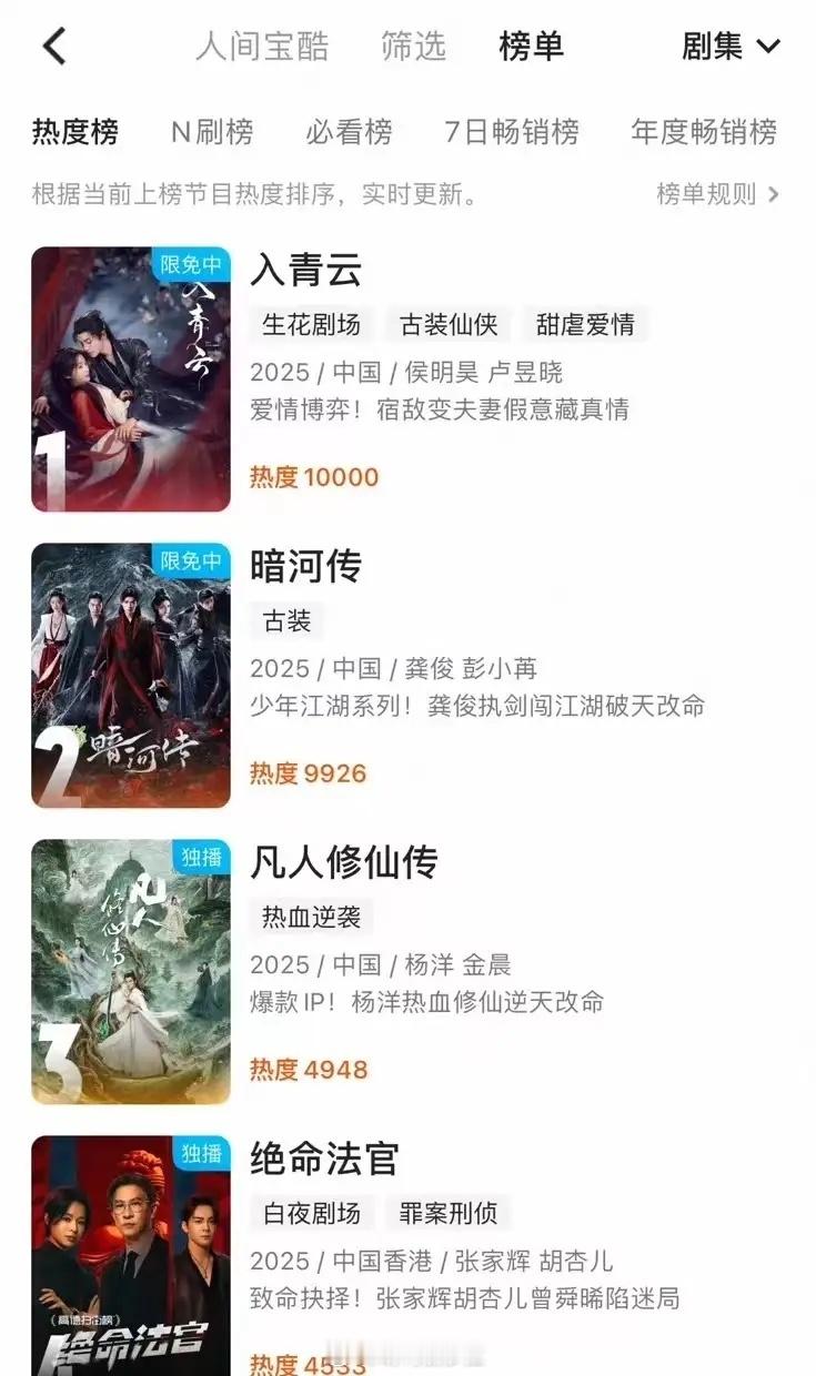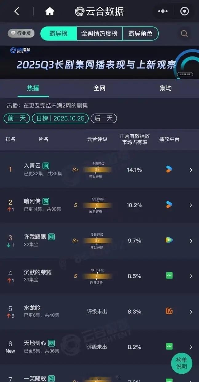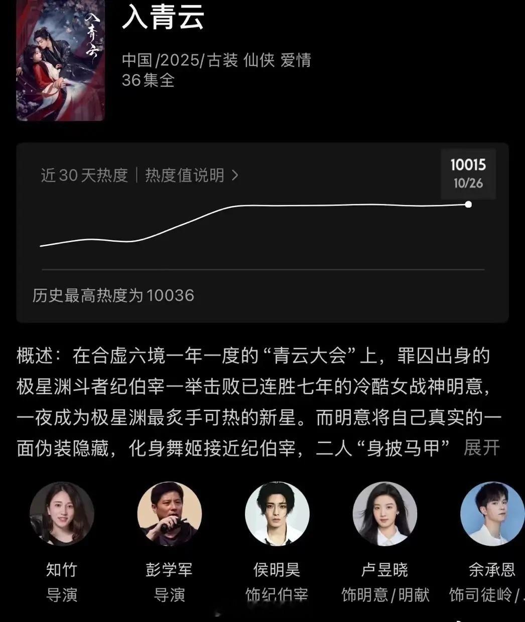 昨日云合榜单揭晓,侯明昊、卢昱晓主演的《入青云》以14.1%的成绩登顶第一,力压多部热剧彰显强劲号召力。
