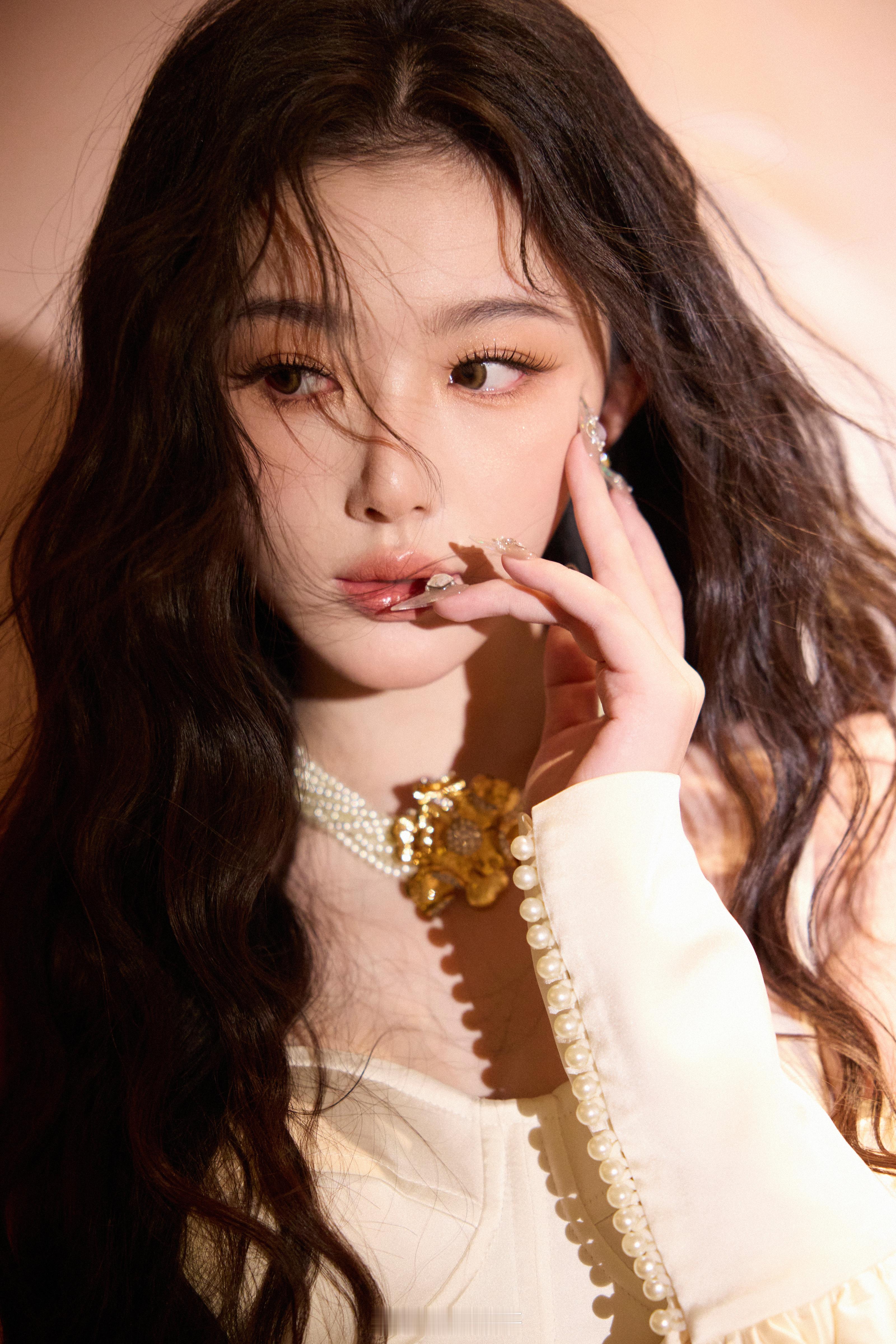 顶光下的孔雪儿 在顶光的轻抚下,孔雪儿宛如从梦幻中走来的仙子。她的美超越了以往,妆造熠熠生辉,如珍珠般散发着温润而迷人的光彩,让人心生无尽的温柔与爱意。