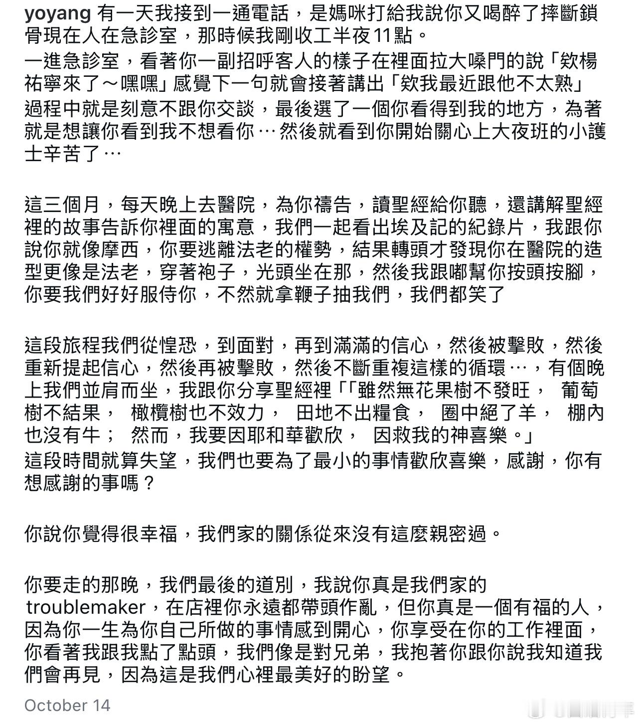 杨祐宁为逝世的父亲写的悼念文章,挺细腻的文笔。