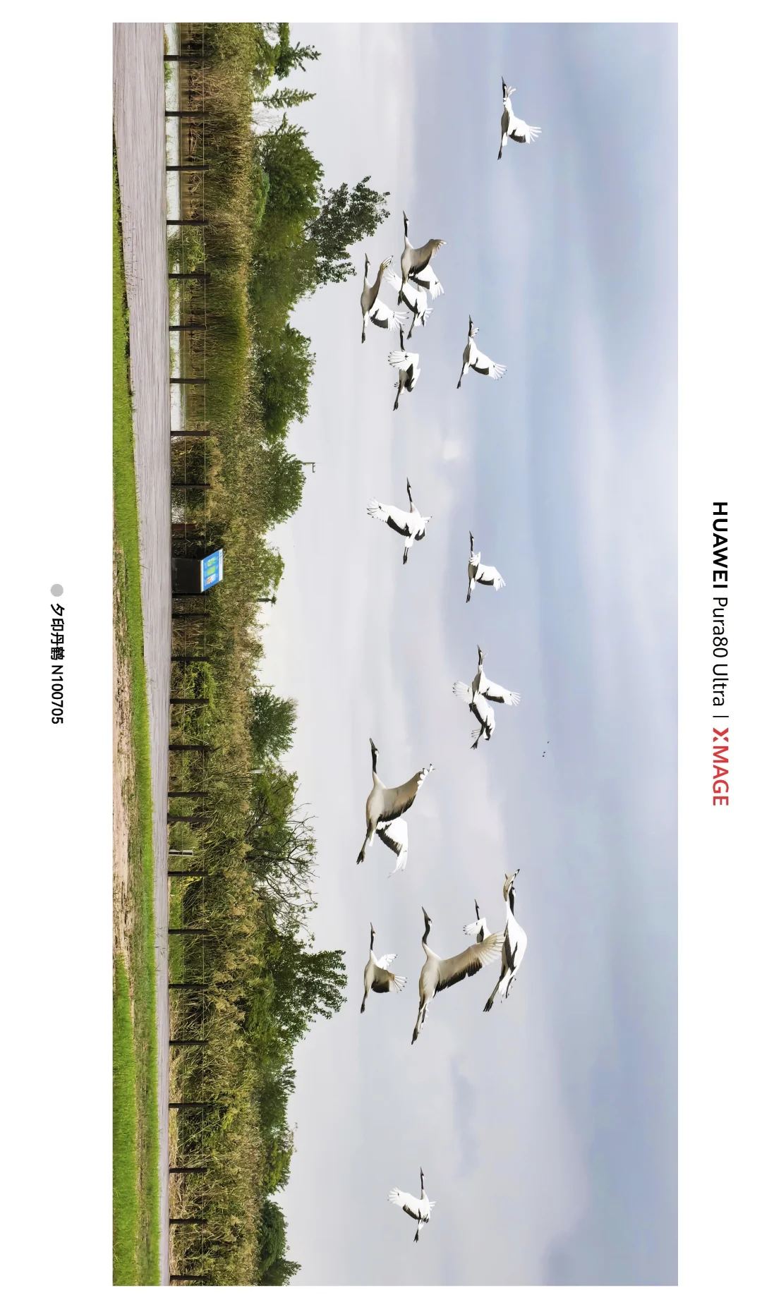 不仅如此,华为Pura 80 Ultra的超大底双长焦,让两个潜望长焦共用一个CMOS镜头,使空间利用更高效,画质提升显著,能让我在放大10倍的情况下拍到远处的丹顶鹤以及麋鹿群,画质依旧非常清晰。各种焦段覆盖更完整,支持3.7倍中长焦和9.4倍超长焦两个光学焦段。新增的 AI辅助构图功能,实现智能取景,不管人物还是景色,都能随手出片!