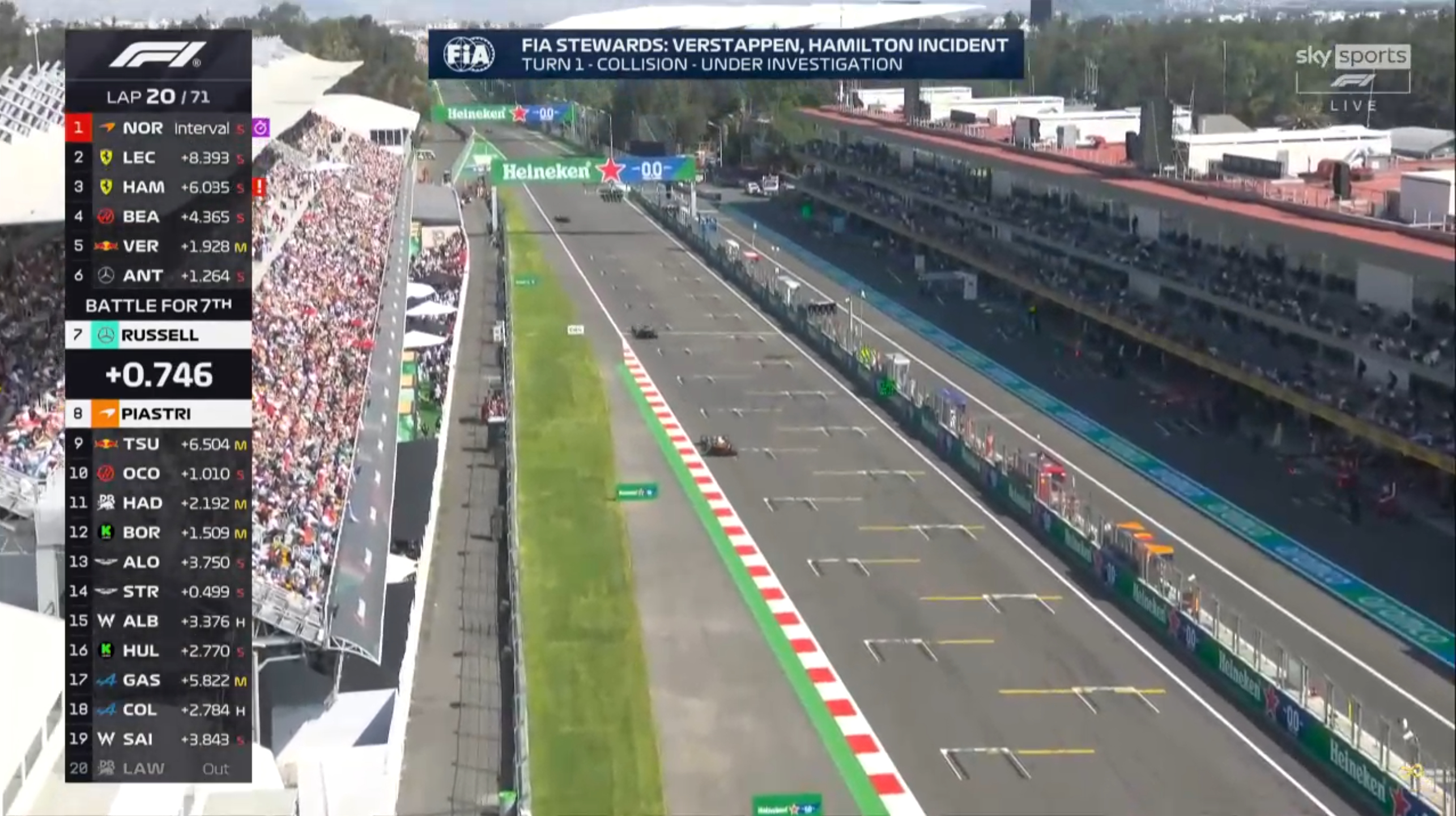 1号弯汉密尔顿和维斯塔潘的事件,也进入到了调查程序F12025F1墨西哥城大奖赛