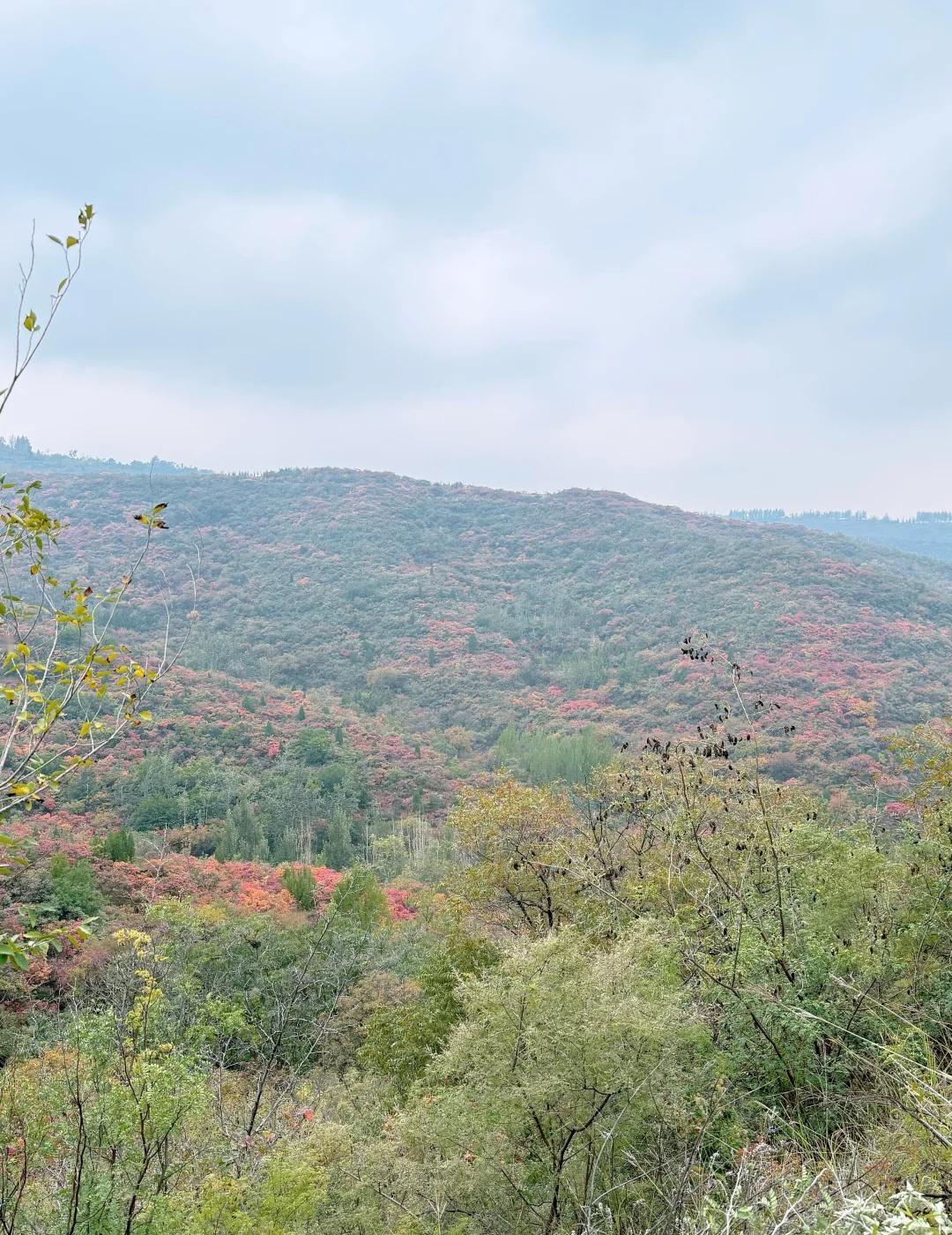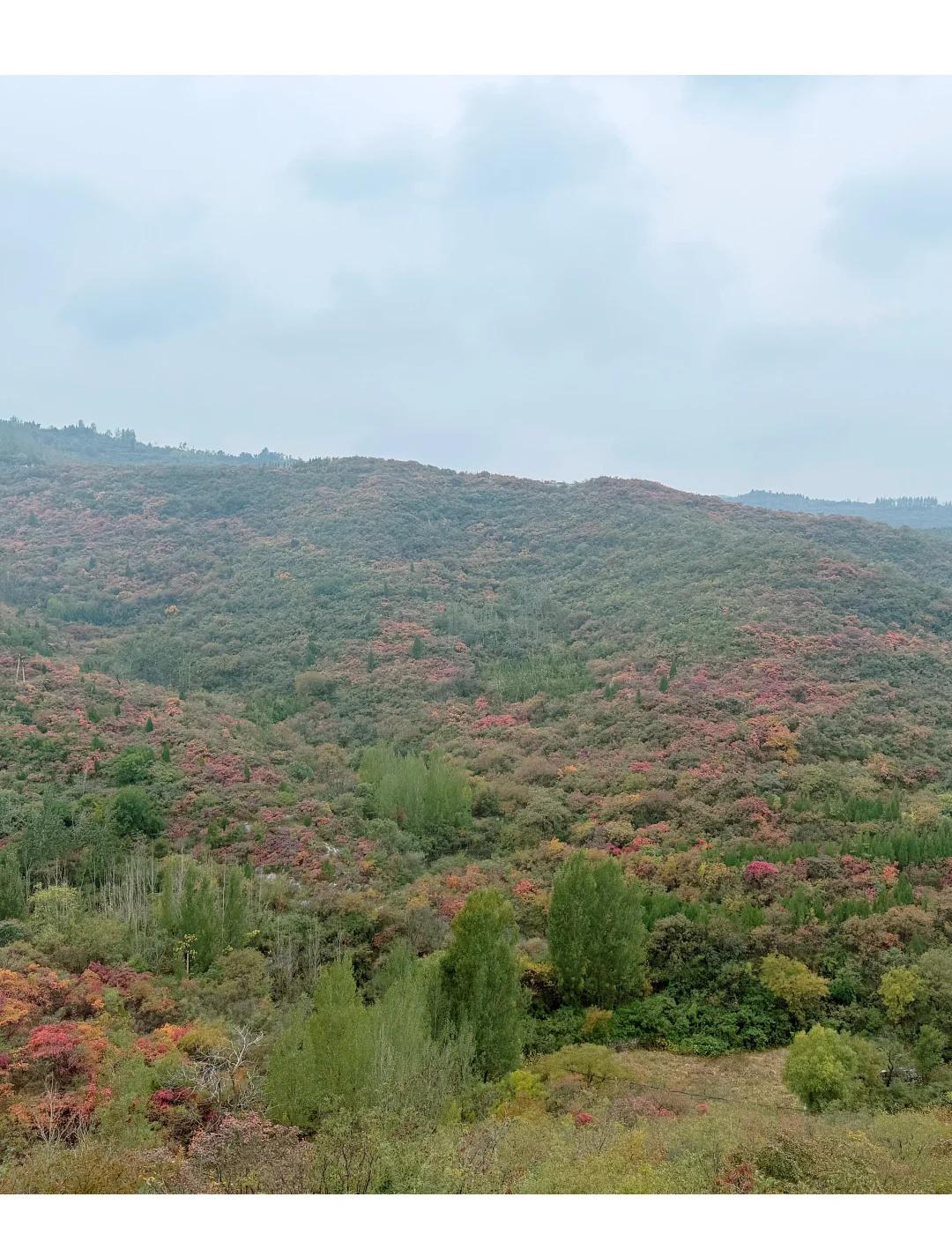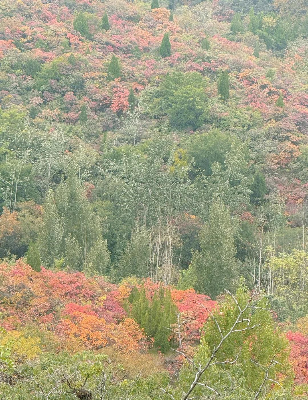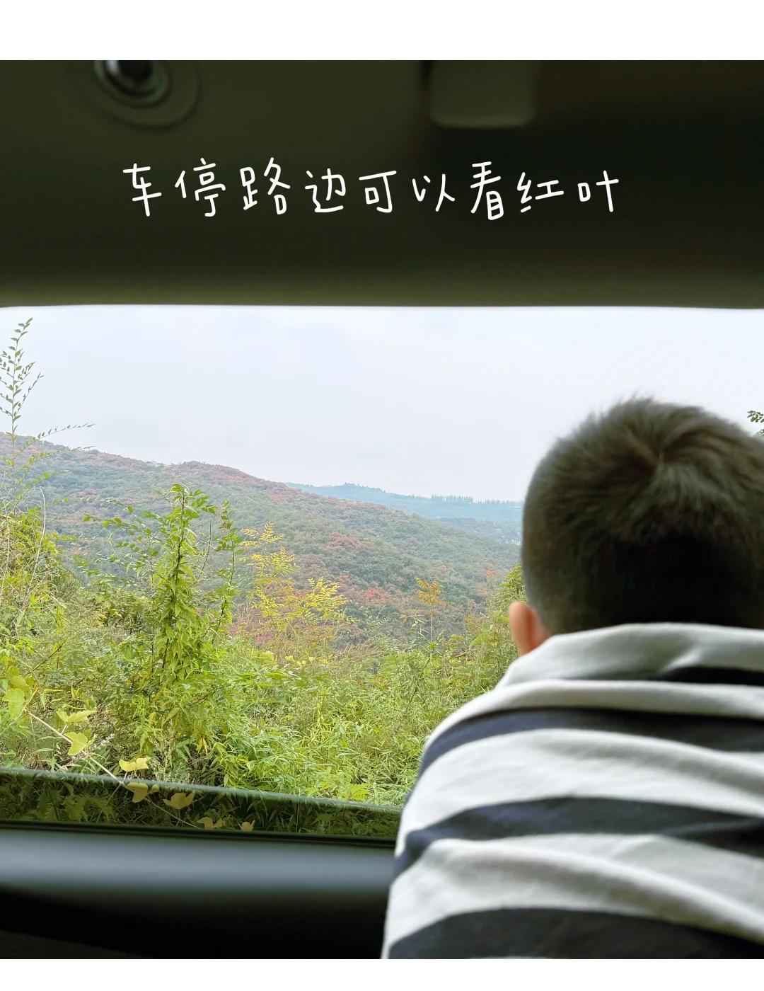 郑州达西沟慈云路坐车上看红叶 周末去达西沟的路上大部分人是走连共线-竹林路去达西沟,但是容易堵车,我们从慈云路去达西沟,意外发现了一处超美的红叶打卡点~慈云路过了郑洛高速后第一个岔路口,看图4 图5这里可以路边停车,站到路边能看到漫山遍野的红叶,非常漂亮,顺着路一直走进去,走到尽头就是“中州电缆”(图10)(试了下地图找不到)。 慈云路现在还在修路,有一小段路稍微有点不好走,但幸好一路都挺顺,不堵车,体验还不错。再往前开慈云路能一直到黄牛寨,入口处因为要收停车费经常有点堵。 黄牛寨旁边就是中岳庙,庙门口有卖大烩菜和油条的小摊,味道意外地不错😋~庙里厕所那边还看到了几只野鸡, 一条秋日小众赏叶路线,风景好、车流少,很适合周末自驾 又到登山赏红叶的好时节 红叶 一起赏秋景 郑州