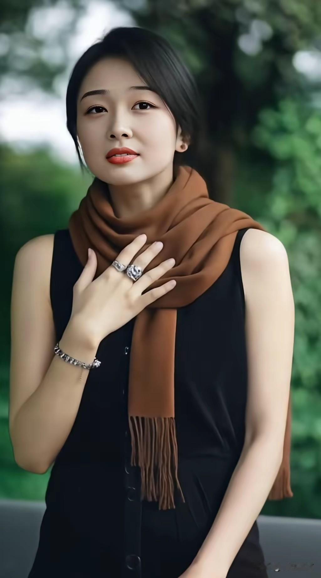 优雅黑裙搭配棕色围巾,尽显时尚气质!