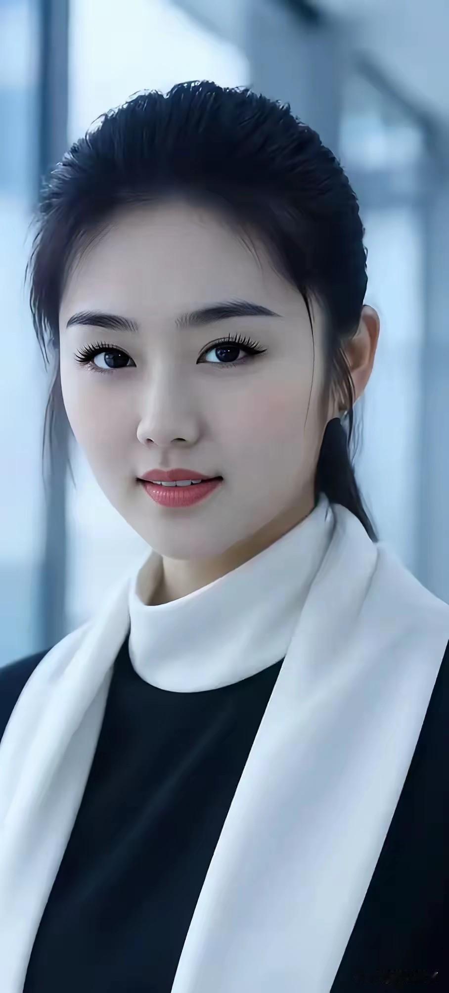 优雅黑发,白纱飘逸,自信微笑,职场女神!