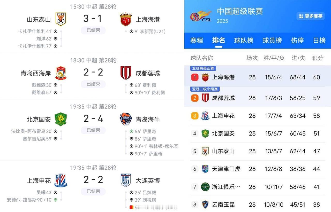 都要看榜一的战果情况,只要海港不赢比赛,其他两支球队不管输赢都要全部等到最后一轮。