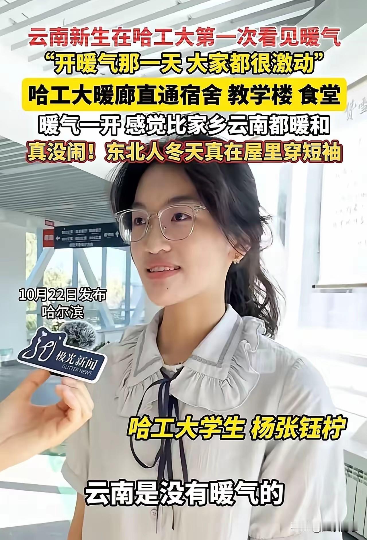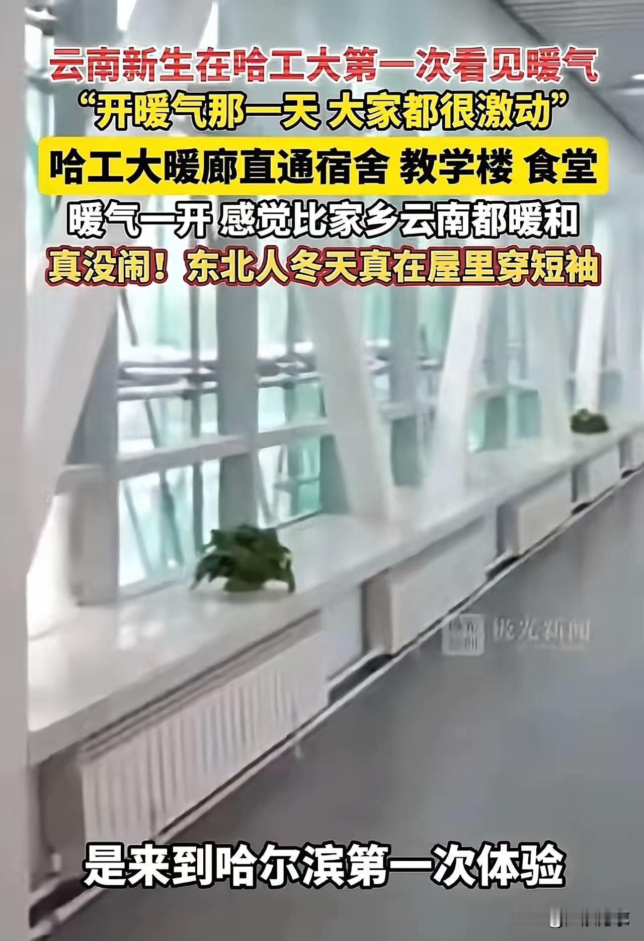 万万没想到,哈工大以这种方式火了! ​就因为一个云南学生的吐槽: ​“开暖气第一天,感觉比家乡云南都暖和!” ​就这一句话,直接把南方人羡慕哭了。 ​说实话,作为过来人,北方的冬天确实爽。 ​屋里暖气一开,穿个短袖吃冰棍,那都不是事。 ​睡觉更是舒服得不行,脚丫子都是暖的。 ​怪不得这云南小姐姐激动得不行,这体验感确实降维打击。 ​所以问题来了,大家觉得是北方过冬爽,还是南方“魔法攻击”更胜一筹? ​评论区聊聊! 硬核哈工大 哈工大 这波热搜算是戳中了南北方过冬的终极矛盾!哈工大这暖气,硬是把“校园福利”卷成了“地域凡尔赛”,评论区里南方网友的哀嚎都快溢出屏幕了——“我们裹着羽绒服打游戏,人家穿T恤写论文,这差距比绩点还刺眼!” 说真的,北方孩子可能永远不懂南方冬天的痛。我表姐在杭州读大学那会,冬天宿舍没暖气,热水袋得揣两个,一个暖手一个暖脚,写作业时手指冻得握不住笔,字都写得歪歪扭扭。有次视频通话,她裹着两件毛衣加羽绒服,还缩在被子里,说空调开30度都像没开,风都是凉的。反观哈工大的学生,下课回宿舍第一件事就是脱外套,食堂里甚至能看到穿着短袖打饭的同学,这种“室内四季如春”的体验,对南方人来说简直是传说级待遇。 哈工大的暖气能火,不光是因为南方人羡慕,更因为它戳中了大家对“过冬尊严”的向往。北方的集中供暖可不是简单的“暖和”,是那种从骨子里透出来的踏实——洗完澡不用急着擦干穿衣,湿头发自然风干都不怕着凉;凌晨赶论文不用裹着厚毯子缩在书桌前,一杯热水喝下去,浑身都是舒展的。有哈工大的学生晒出宿舍温度,高达26℃,难怪云南小姐姐会感叹“比家乡还暖”,要知道云南冬天白天温度也就十几℃,室内没暖气的话,照样得裹外套。 但咱也得说句公道话,北方的冬天爽只爽在室内。一踏出宿舍楼,零下十几度的寒风能瞬间把人吹清醒,口罩、围巾、帽子缺一不可,睫毛上都能结霜。南方虽然是“魔法攻击”,湿冷刺骨,但至少出门不用裹成粽子,中午出太阳的时候,找个背风的地方晒晒太阳,还能感受到一丝暖意。我老家在湖南,冬天虽然室内冷,但妈妈会煮一锅腊肉火锅,一家人围在桌子旁,边吃边聊,暖气靠食补,那种热乎劲也挺治愈。 哈工大这波走红,其实也反映了大家对生活品质的追求。现在越来越多南方高校开始加装暖气或改善供暖条件,但像哈工大这样能把暖气温度做到让南方学生“惊为天人”的,确实不多。毕竟北方的集中供暖技术成熟,管道铺设早,这背后是多年的基础设施积累,南方想要追上,还得花点功夫。 不过话说回来,无论是北方的“物理防御”还是南方的“魔法抗性”,都有各自的乐趣。北方孩子冬天能打雪仗、堆雪人,南方孩子能在冬天看到常绿的树木,感受“湿冷中的烟火气”。但如果让我选,我还是站北方暖气!那种穿短袖吃火锅、脚丫子永远不冰凉的冬天,谁能不爱呢? 你在南方的艳阳里裹着貂,我在北方的暖气里露着腰——这场南北方过冬大战,你站哪一边?有没有过让你印象深刻的过冬经历?评论区分享一下,看看谁的过冬方式更“硬核”!硬核哈工大