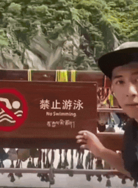 不知是哪国的游客,他对虎跳峡景区的警示牌嗤之以鼻。 他认为那么的水量,傻子才会在这里游泳,觉得牌子立在那,是多此一举的行为。 那么你认为,这块牌子该不该立呢?