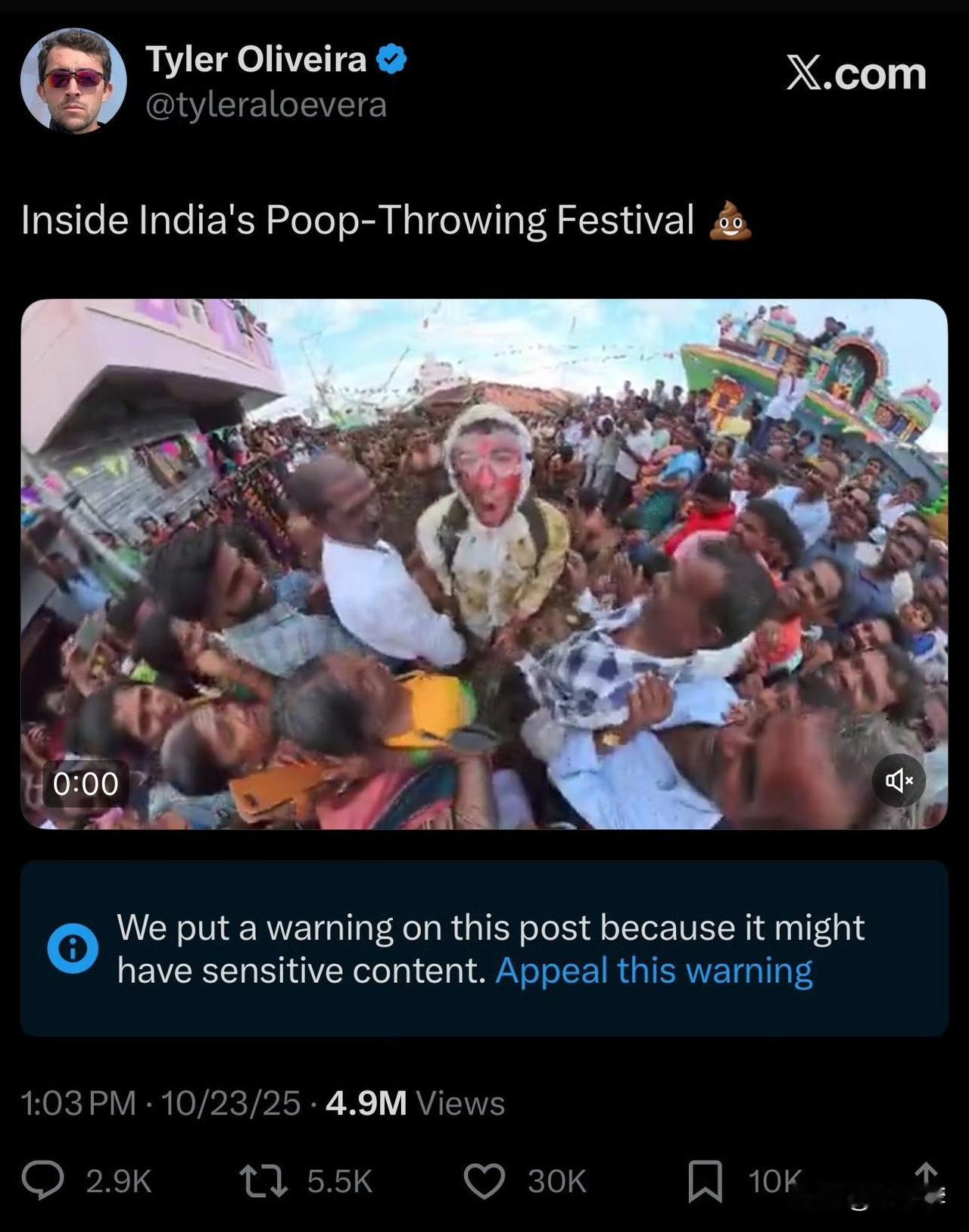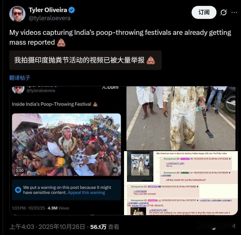 这个抛粪节之前胖亚瑟介绍过,还有个也很奇葩的是女人朝男人丢石头的节日,都是地方信俗转化的,对很多印度人而言都算奇葩。 为啥要举报?不是展示了印度的传统文化吗?[笑哭]印度湿婆神节 印度