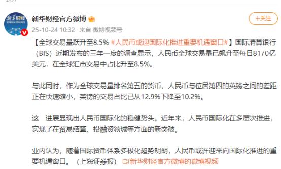 人民币厉害了,根据国际清算银行的数据,人民币的交易额达到了每天8000多亿,占全球的市场份额是8.5%了。   这个数字有多厉害?相当于全球每12笔外汇交易里,就有一笔跟人民币有关。但更有意思的是,环球银行金融电信协会(SWIFT)同期数据却显示,人民币在全球支付货币中的占比只有3.17%。为啥会有这么大的差距?因为SWIFT这套美国主导的结算系统,早就跟不上人民币国际化的节奏了。   SWIFT的局限性在哪?首先它只能统计成员银行之间的跨境支付报文,中国国内庞大的人民币交易根本不在它的统计范围内。   其次人民币跨境支付现在越来越多地通过中国自己的CIPS系统完成。截至2025年9月,CIPS已经覆盖189个国家和地区,2025年上半年处理了90.19万亿元的跨境人民币业务。   这些交易同样没被SWIFT统计进去。简单来说,SWIFT就像一个戴着近视眼镜的观察者,只能看到离岸人民币交易的冰山一角,而人民币在岸和跨境交易的全貌,它根本看不清。   更关键的是美国曾经威胁要用SWIFT当“金融武器”对付中国,特朗普政府在2025年9月就曾暗示,可能将中国踢出SWIFT系统,以施压中国在稀土出口等问题上让步。   但这种威胁现在看来更像是纸老虎,一方面中国已经建立了CIPS系统作为替代方案,就算被SWIFT排除,跨境人民币结算也能正常运转。另一方面,美国自己也承受不起这样做的后果。   如果中国被踢出SWIFT,全球供应链可能瞬间瘫痪,美元信用也会遭受重创,因为这等于向全世界证明,美元体系随时可能被政治化使用。美国智库CSIS早就警告过,这种做法会加速“去美元化”进程,最终反噬美国自身的金融霸权。   显然人民币绕过SWIFT的努力,已经在多个领域取得突破。在能源贸易中,人民币结算正在悄然取代美元。   2025年,印度最大的国有炼油企业印度石油公司,已经用人民币完成了多批俄罗斯石油的支付。这背后的逻辑很简单:俄罗斯需要人民币来购买中国的工业品和技术,而印度需要俄罗斯的低价石油来稳定国内能源市场。人民币成为双方的最佳选择,既绕过了西方制裁,又降低了汇率风险。   同样中俄之间的天然气贸易也开始采用人民币和卢布50:50的结算比例。截至2025年,人民币在俄罗斯进口结算中的占比已经飙升至42%,成为俄罗斯最主要的外汇储备货币之一。   除了能源领域,人民币在大宗商品交易中的应用也在扩大。2024年,上海清算所推出的“大宗商品清算通”跨境人民币业务正式落地,首笔3300万元的进口铜交易通过CIPS完成结算。   这意味着,中国企业在购买国际大宗商品时,可以直接用人民币支付,不再需要先兑换成美元。这种模式正在被越来越多的国家接受,因为它既降低了交易成本,又减少了对美元的依赖。   中国还通过黄金储备的增加来巩固人民币的地位,截至2025年9月,中国黄金储备已经连续11个月增长,总量达到2303.52吨。上海黄金交易所推出的“黄金走廊”计划,更是将黄金与人民币结算深度绑定。东盟国家可以将人民币兑换成金条,通过区块链技术实时验证纯度和重量,从而绕过SWIFT系统完成贸易清算。这种“黄金+人民币”的模式,为人民币提供了更坚实的信用基础,也让人民币在国际市场上更具吸引力。   总的来说,人民币的崛起不是偶然,而是中国经济实力和金融改革的必然结果。中国拥有全球最完整的工业体系、14亿人口的庞大市场,以及“一带一路”倡议带来的广泛合作网络。这些优势让人民币在国际交易中越来越受欢迎。   而美国试图用SWIFT遏制人民币国际化的做法,最终只会加速全球金融体系向多极化发展。正如俄罗斯被踢出SWIFT后,全球各国都开始寻找替代方案一样,美国的“金融霸权”正在失去往日的威慑力。未来,人民币有望在国际舞台上扮演更重要的角色,而SWIFT的“垄断地位”也将逐渐成为历史。   来源:新华财经 【全球交易量跃升至8.5% 人民币或迎国际化推进重要机遇窗口】