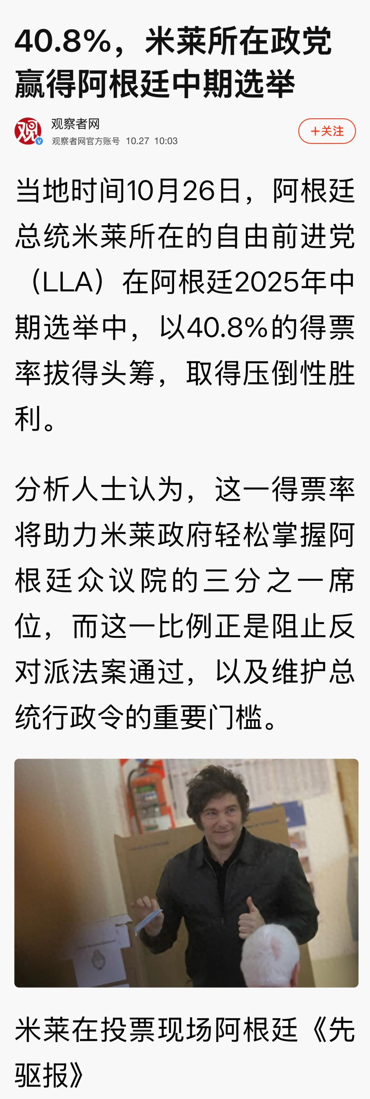 美国总统特朗普在阿根廷选举前表态支持米莱,并提出以胜选为条件的200亿美元援助,此举在阿国内被批为“外部干预”。