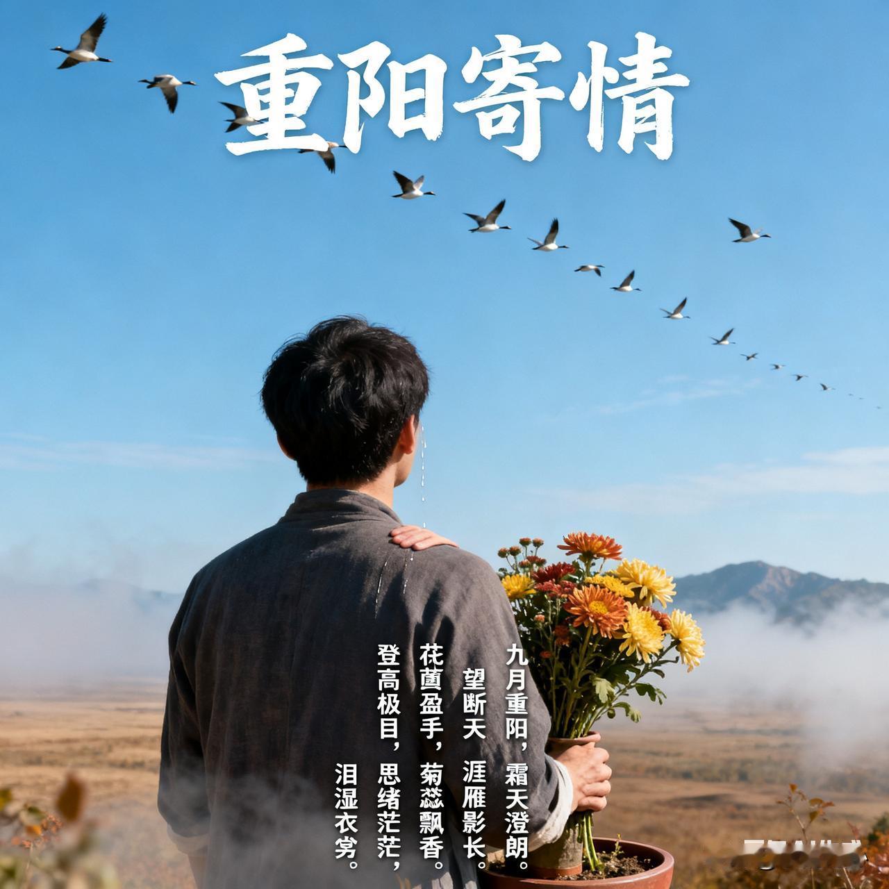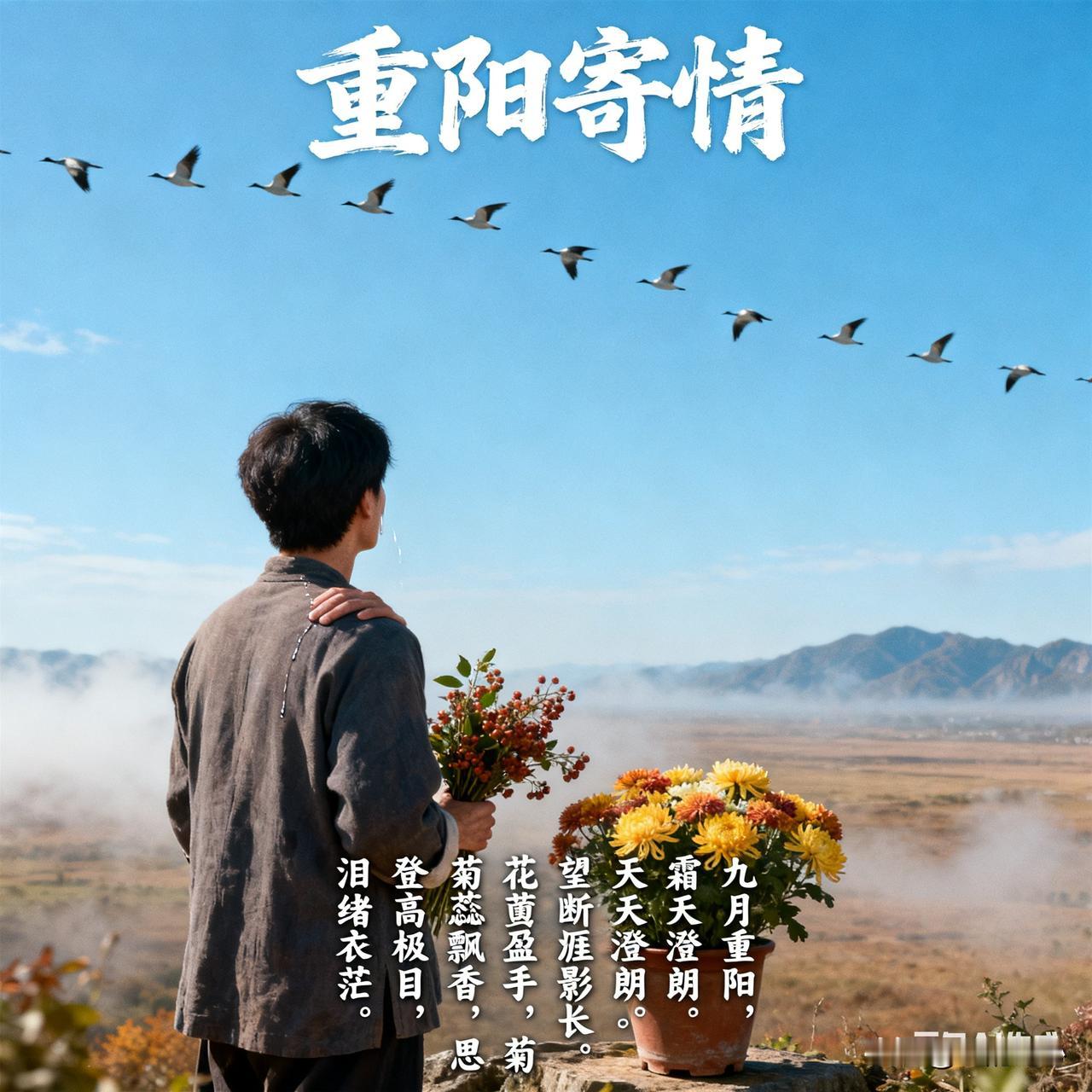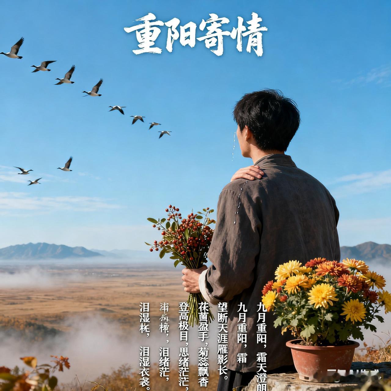 《重阳寄情》乐韵诗心原创诗词: 九月重阳,霜天澄朗。望断天涯雁影长。茱萸盈手,菊蕊飘香,忆旧时光。 昔日高堂,今安何方?岁月匆匆鬓已霜。登高极目,思绪茫茫,泪湿衣裳。 在重阳节这个特殊的日子,登高远望,大雁渐远,手中茱萸、身旁菊花都勾起往昔回忆。想起渐渐老去的长辈,岁月无情,忍不住泪满衣裳。