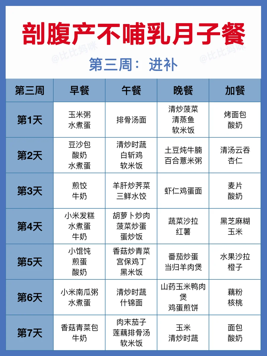 剖腹产不哺乳月子餐❗️42天照着吃恢复快✅
