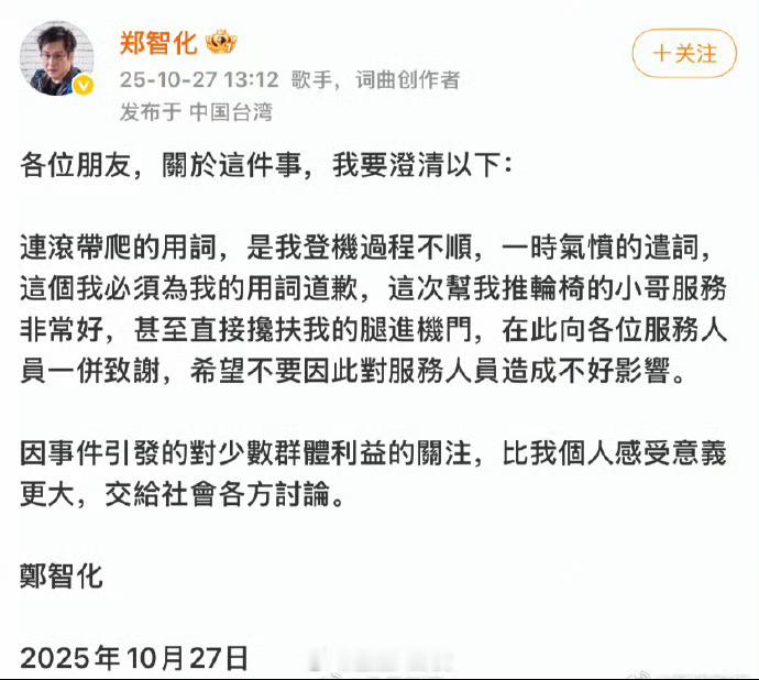 郑智化就用词道歉:“连滚带爬”是一时气愤的遣词[并不简单]