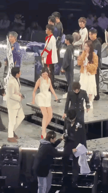 杨幂在共创之夜的造型太美了,穿的白色套装虽然简单,却比Vogue盛典上的金色裙子还漂亮,白色露肩短裙又美又飒,大长腿又细又直,太逆天了。 最绝的是杨幂的状态,她体态轻盈,眼神灵动,头上的白色蝴蝶头饰让她显得更加年轻、有朝气,看不出来,杨幂都快四十岁了。 再看杨幂身边的沈腾和周深,体态和状态都不如杨幂。 沈腾走起路来弯腰驼背,走路的时候小心翼翼的,略显老态,周深明显没有杨幂高,也没有杨幂挺拔。 杨幂穿着高跟鞋挽着沈腾的手臂下台阶的画面,就像女儿搀扶着老父亲,笑不活了。