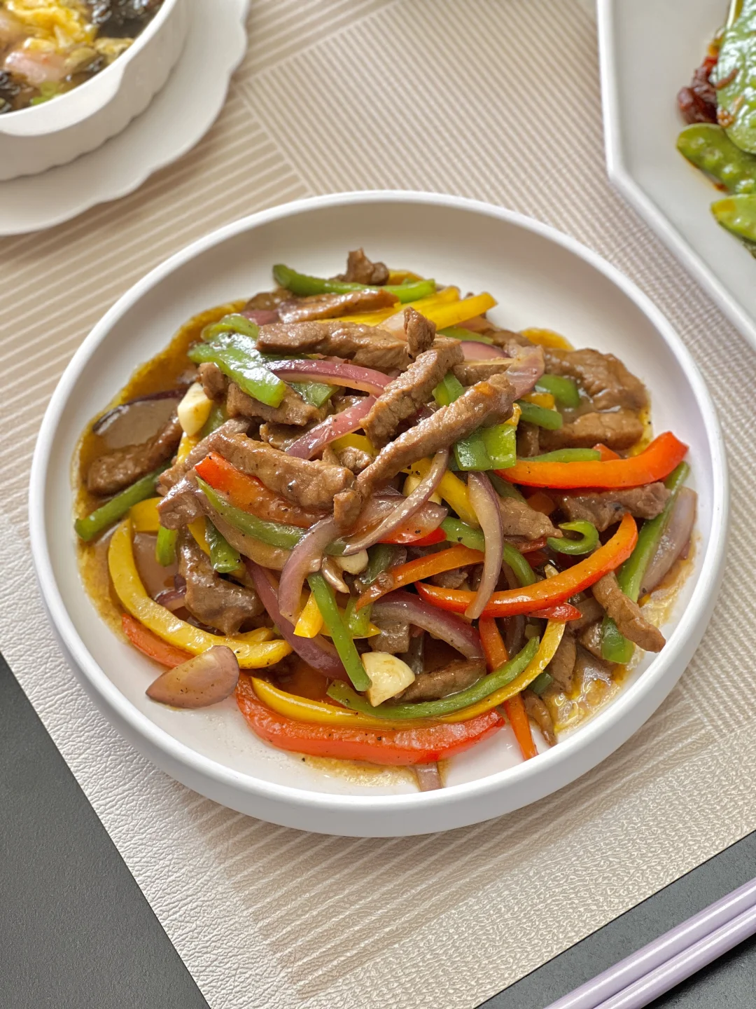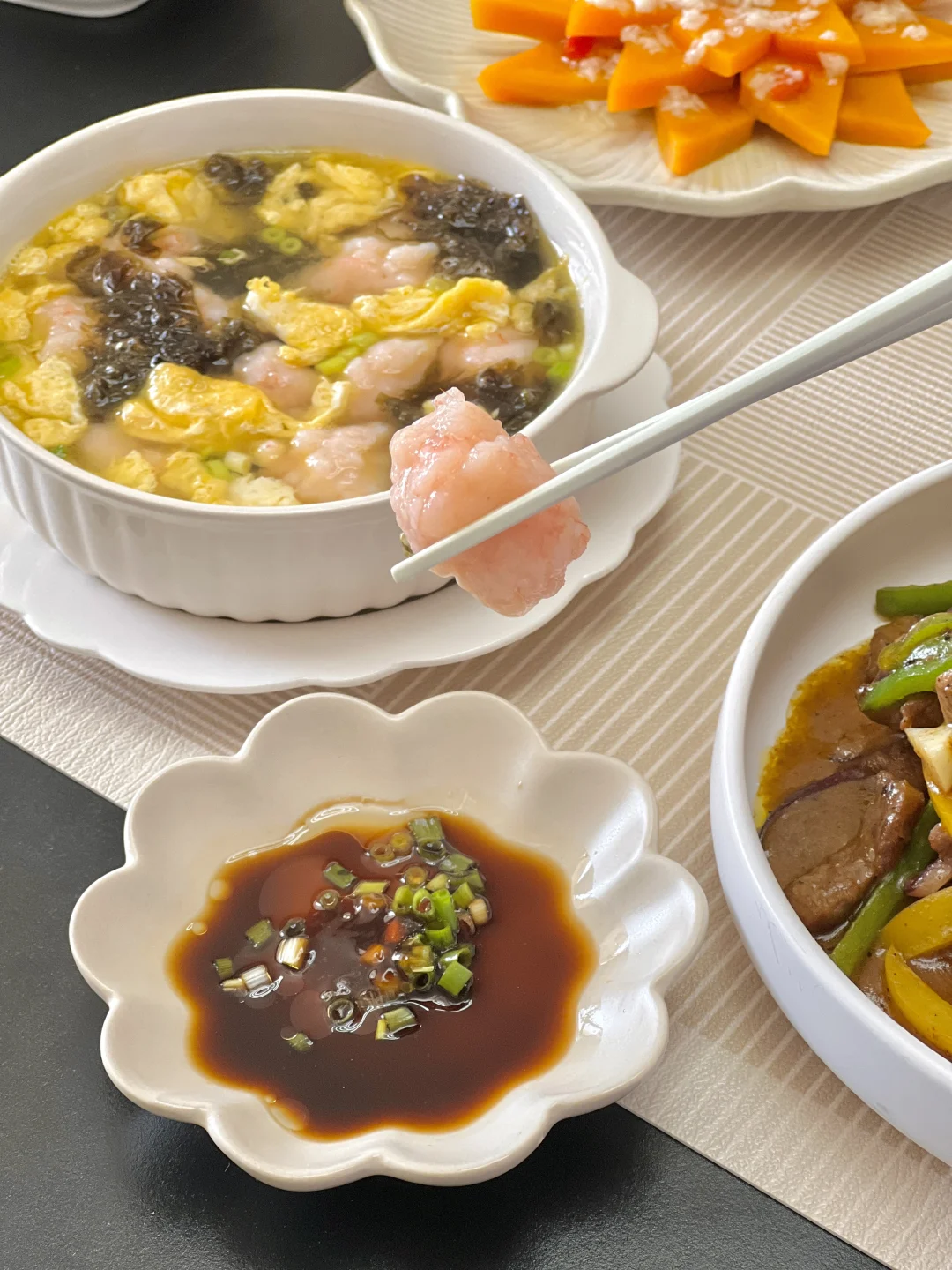 今天依然是平平无奇的家常菜,有菜有汤,南瓜勉强充当甜品,这一顿也算是及格了吧[暗中观察R] 【黑椒牛柳】 【紫菜虾滑】 【酒酿蒸南瓜】 【腊肠荷兰豆】
