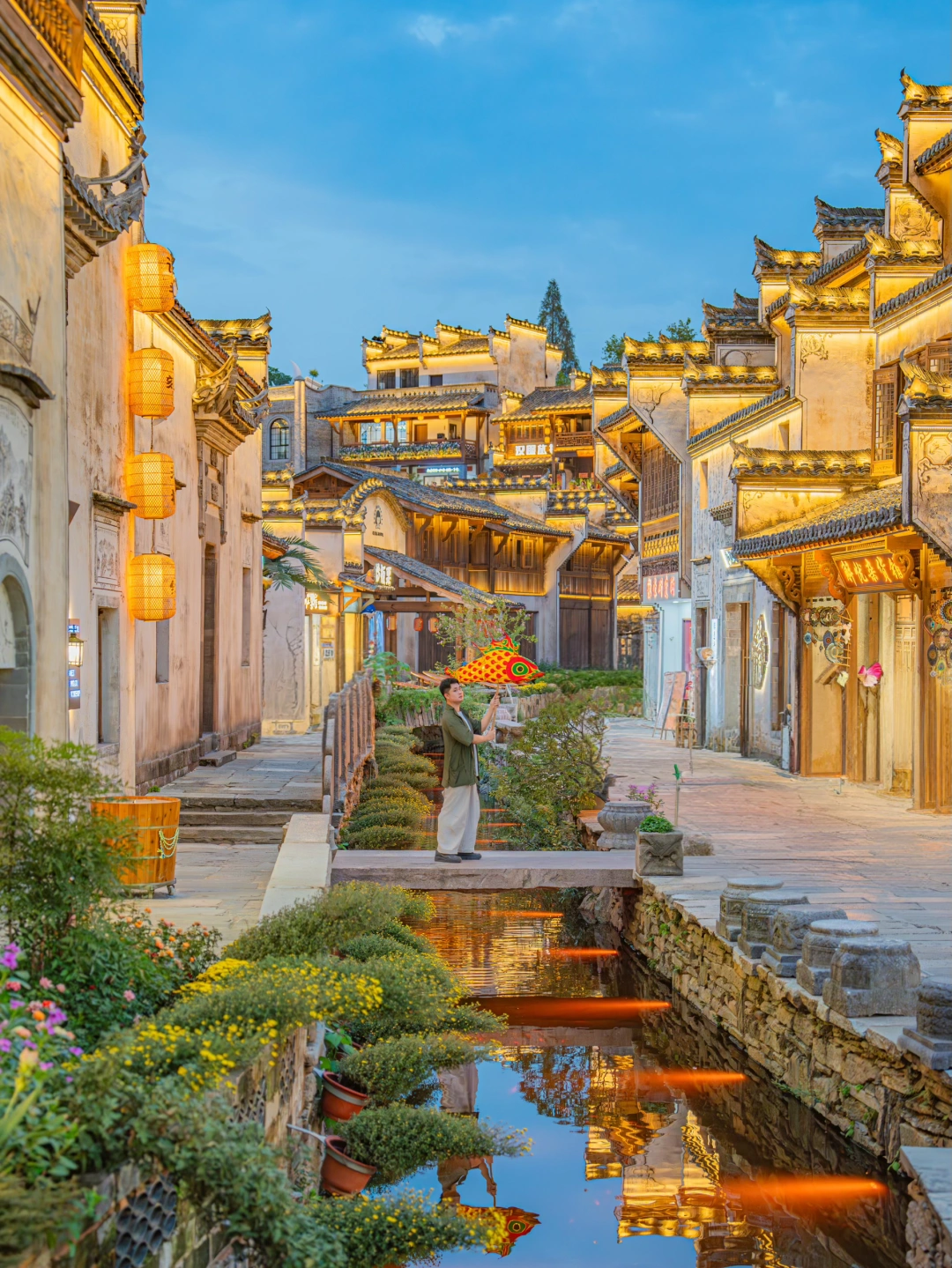 这绝对是我今年去过最宝藏的江南老城了💓 小众又免费,一站式的小众旅行地 南宋时期留下的徽派建筑真的美到失语! 鱼灯、火棍、杂技…各种非遗表演也超惊艳✨ 不仅仅有超多非遗可以免费看 还有小桥流水水墨江南的古典徽派建筑 . 📍江西·婺源|弦高城·西湖凼 🚄高铁到婺源站,打车10分钟就到北门 🎫门票:0元免费!! . 🌟推荐游览路线: 北门街—先儒街—油灯街—廿九巷—丁香雨巷 🌟鱼灯巡游线路: 人民礼台中心广场➟丁香雨巷➟廿九巷➟油灯街➟先儒街➟北门街➟犁尖角➟灯彩广场➟璧月门➟犁尖角 . 📸这几个机位拍照封神了: 1️⃣ 观景台(北门入口左转上楼) 俯瞰整座古城,白墙黛瓦太震撼 2️⃣ 鱼灯广场 挂满鱼灯,白天夜晚都超出片 3️⃣ 犁角尖 标志性建筑,几何结构超有中式美学 4️⃣ 西湖凼 日落时湖面倒影绝美,还能喂鱼听笛 5️⃣ 鹊桥 小桥流水+晒秋场景,江南氛围拉满 . 🔥必打卡演出: ▪️鱼灯巡游🏮 游客也能领鱼灯一起玩,氛围太棒了! ▪️杂技/变脸/火刀火棍/吐火/霓裳龙舞 都在人民礼台,现场看真的震撼 ▪️西湖笛韵 坐在湖边听笛声太惬意了~ ▪️民乐合奏 在犁角尖茶楼,瞬间穿越千年 . 🎏美食&体验: ✔️先儒街超多小吃和江西菜,味道也是一绝 ✔️廿九巷有清吧可以小坐 ✔️北门街能体验纸伞、琉璃等非遗手作 ✔️晚上还有超多小酒馆可以继续嗨~ . 这个秋天总要去趟婺源吧~ 漫步弦高城,一梦到徽州🍂 .