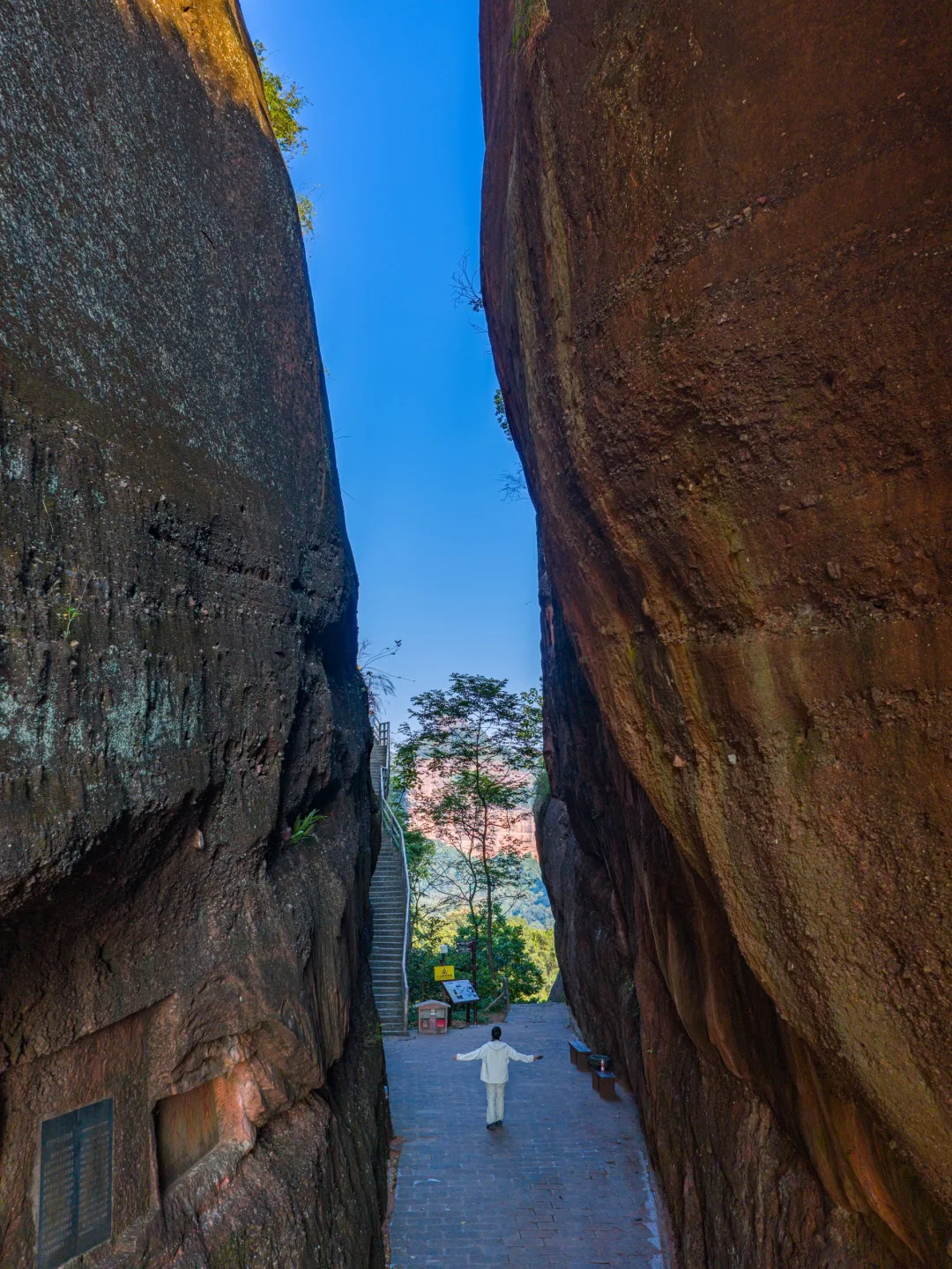 ④九九天梯:接近90°的坡度,是考验勇气和胆量的时候,爬上山顶才能感受到一览众山小的感觉