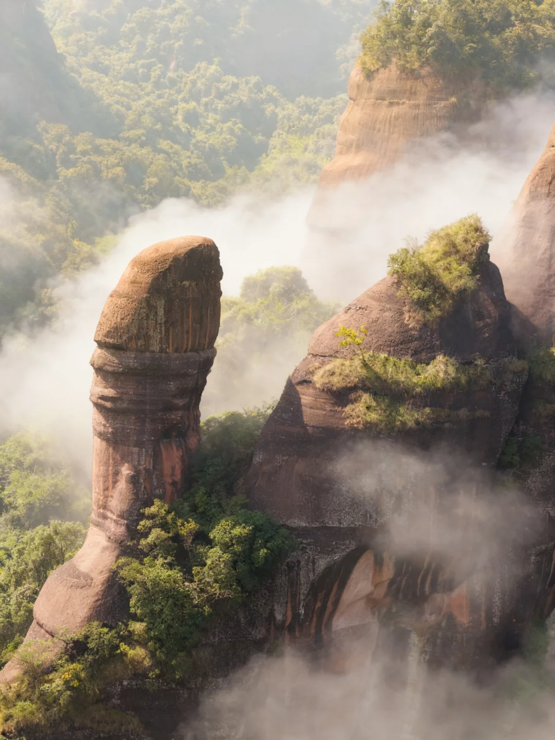 ①阳元石:经过上百万年风化侵蚀形成的独特奇石,也是丹霞山最出名的景观之一。