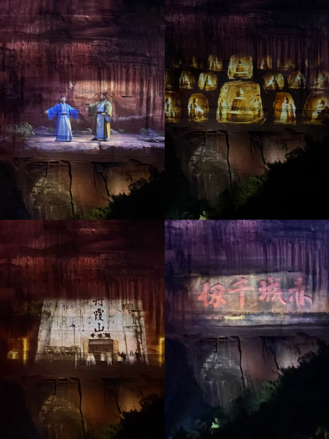 ⑤万古丹霞实景光影秀:沉浸式灯光秀让你身临其境的去感受丹霞山夜游的魅力,一共7大场景,28个景观效果。