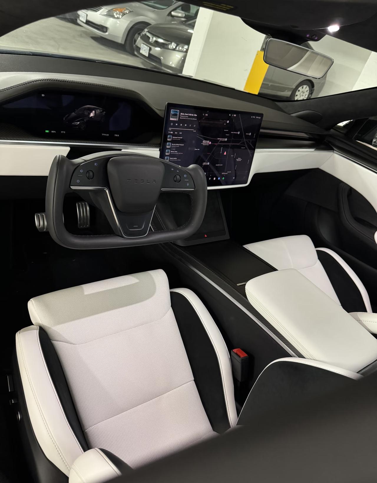 不得不说特斯拉的设计师还是很牛掰的,颜值非常在线,比国内某品牌的抄袭好多了吧,就是这个方向盘不太喜欢[捂脸]