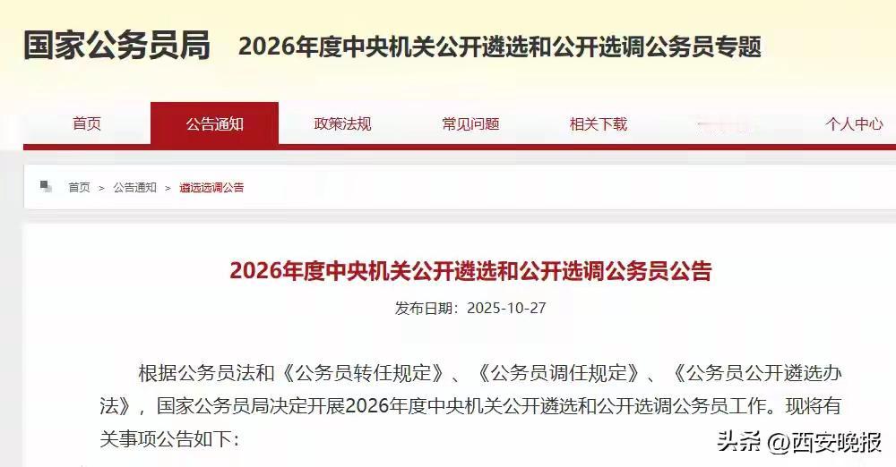 2026年度中央机关公开公开遴选和公开选调公务员,在年龄限制上悄然发生了变化,不同职位的年龄要求都有所放宽,最大放宽到46周岁。 公告显示,报考处长、二级调研员职位的年龄在46周岁及以下;报考三级、四级调研员职位的,年龄在43周岁及以下;报考一级主任科员及以下职级职位的,年龄在38周岁及以下。相较于2025年度的遴选公告,普遍放款了3岁。 这一变化,契合了延迟退休政策的实施,同时,也更加科学合理。放宽就业年龄限制,是为大龄就业者提供更多的就业机会,而放宽遴选、选调年龄,则是将具有丰富基层工作经验、正值年富力强的公务员,选拔到更重要的岗位,发挥他们更大的作用。无论从促进就业,还是优化干部队伍,都不失为一项重要举措。