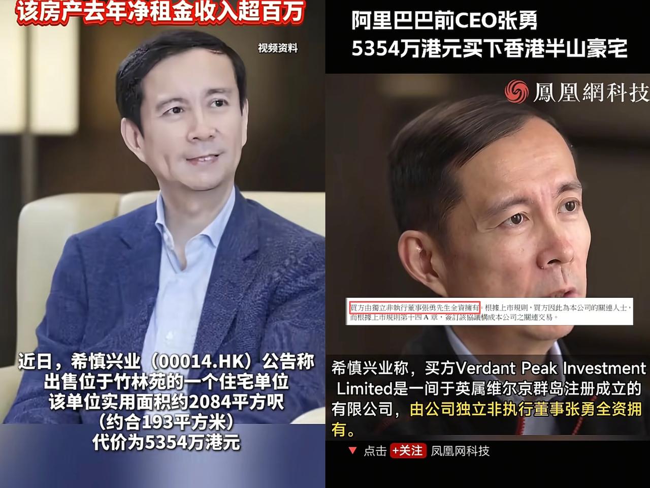 阿里巴巴icon前CEO张勇icon终于买房了!在杭州icon住了十几年酒店,费用全部公司出,自己一身轻松。现在退休了花5354 万港元(约合人民币 4911 万元)在香港icon买豪宅,就可以去度假养老了。他现在还是香港交易所中国业务咨询委员会成员,以后大概率会在香港比较多了。 人家可不是单纯为了享受哦,他现在是香港交易所中国业务咨询委员会成员,这房子妥妥也是个“战略布局”。香港作为国际金融中心,对他的职业发展和资产配置都有大作用 看来大佬做事就是不一样,买房都带着前瞻性。咱普通人可能没法像大佬这样豪购,但能从中学到,做啥都得有点长远眼光。你们觉得张勇这房子买得值不值?快来说说看法。