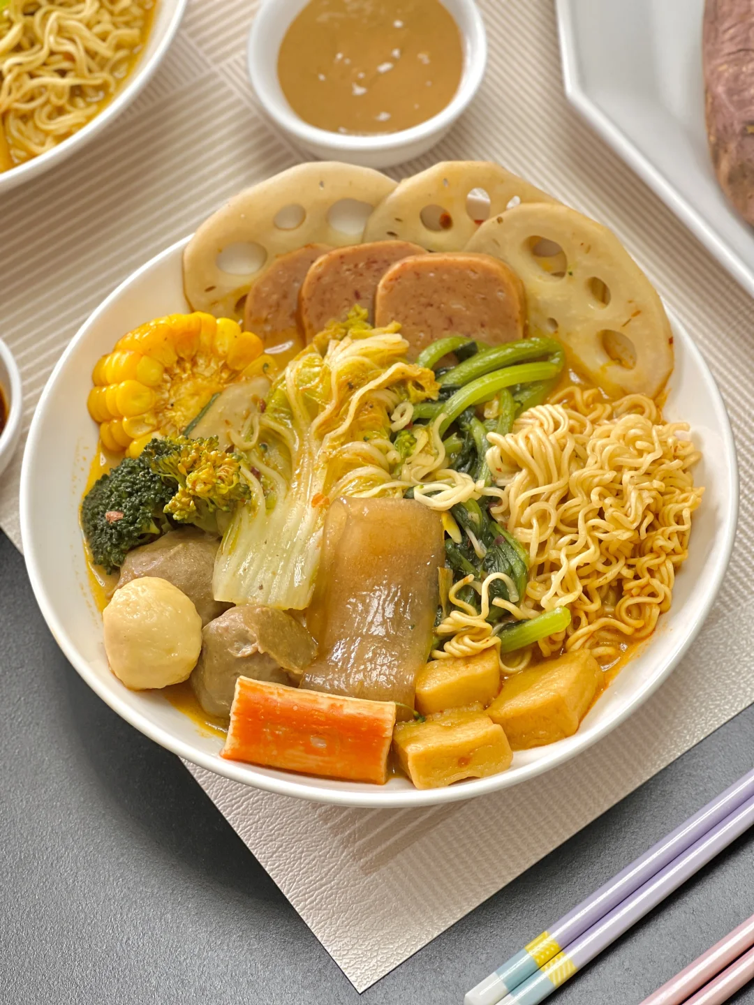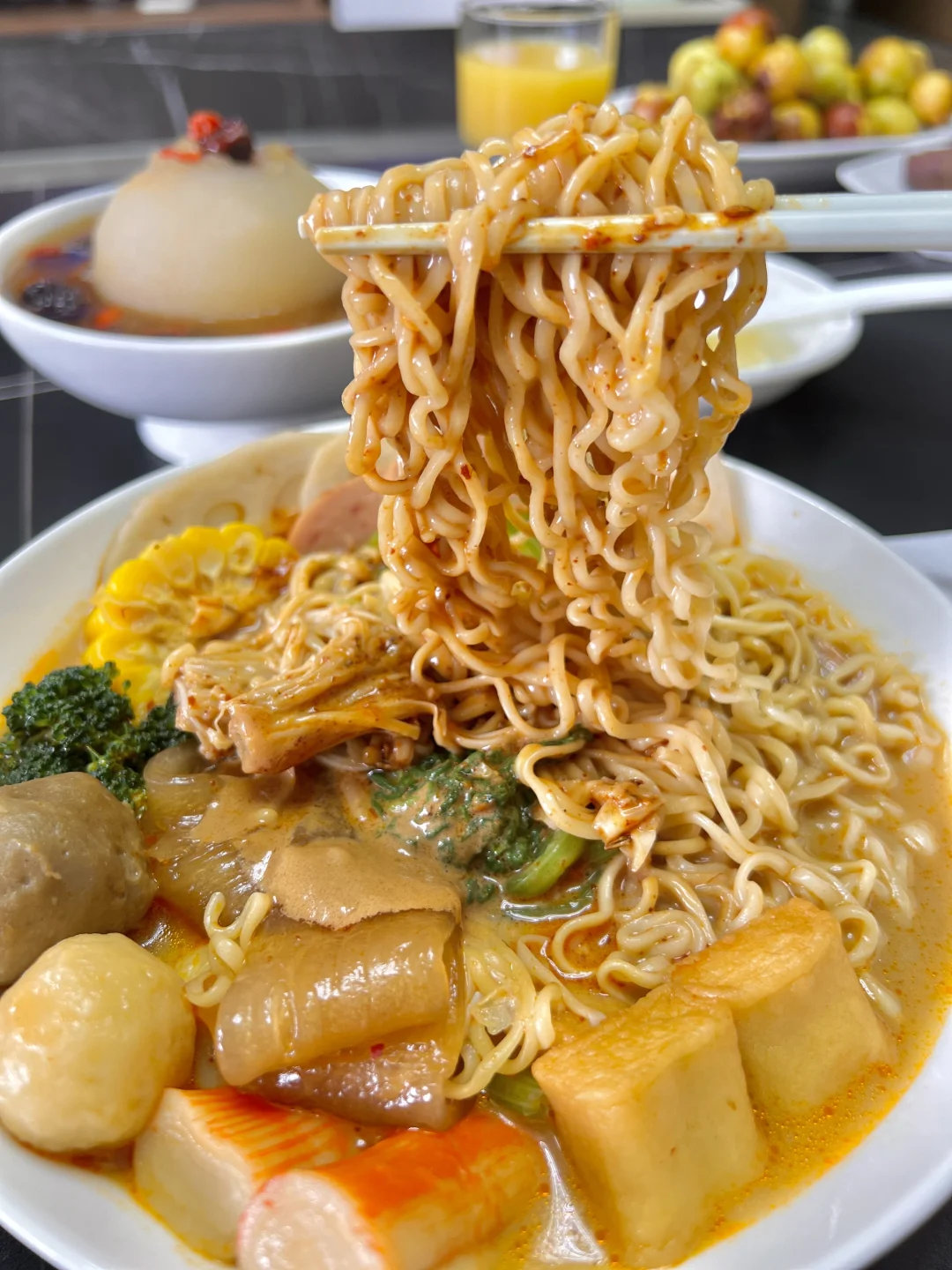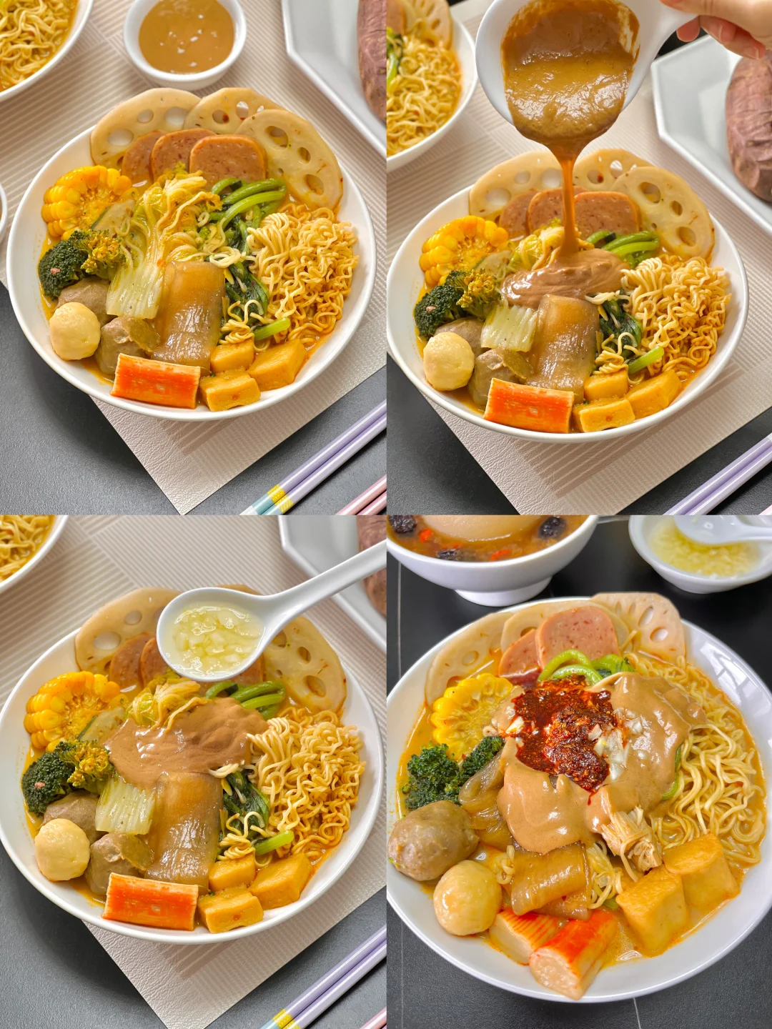 长假过完家里冰箱里还剩好多菜,今天灵机一动做一顿热乎乎的麻辣烫[派对R]刚好把各种边角料清理一下哈哈哈~用火锅底料煮过的汤底里加入牛奶,一下子就中和掉辛辣,味道柔和且醇厚~吃之前还要倒上灵魂麻酱、蒜汁和辣椒,一口黏黏糊糊的感觉可太棒啦[大笑R] 【牛奶麻辣烫】 【雪梨银耳汤】 【秘制烤红薯】