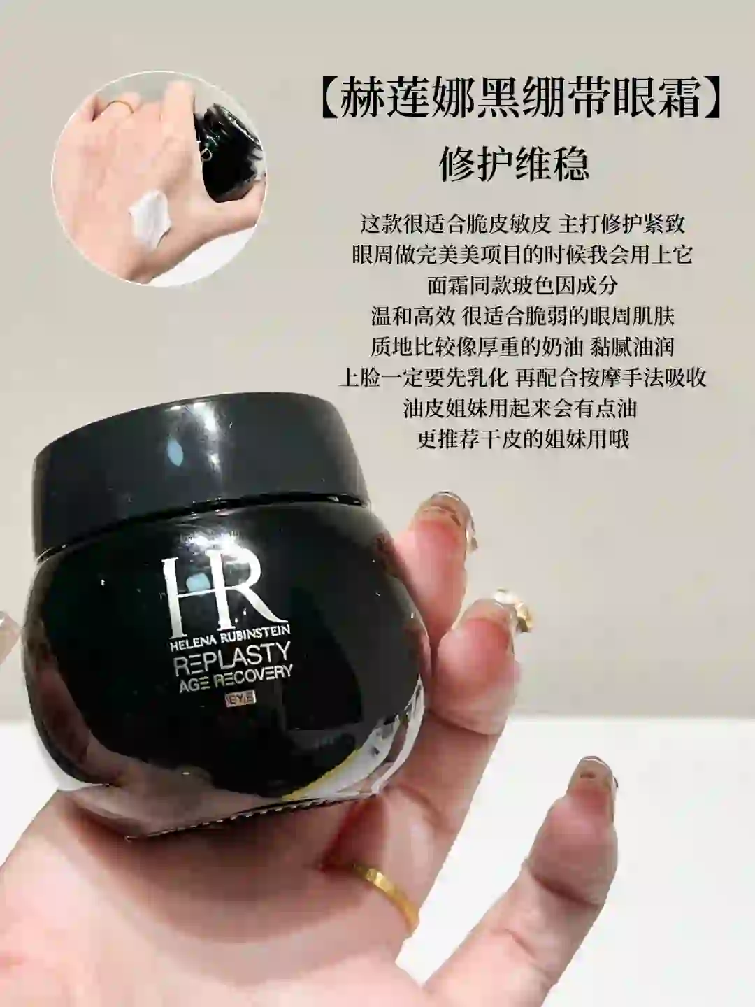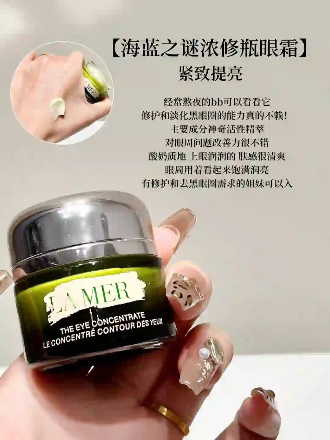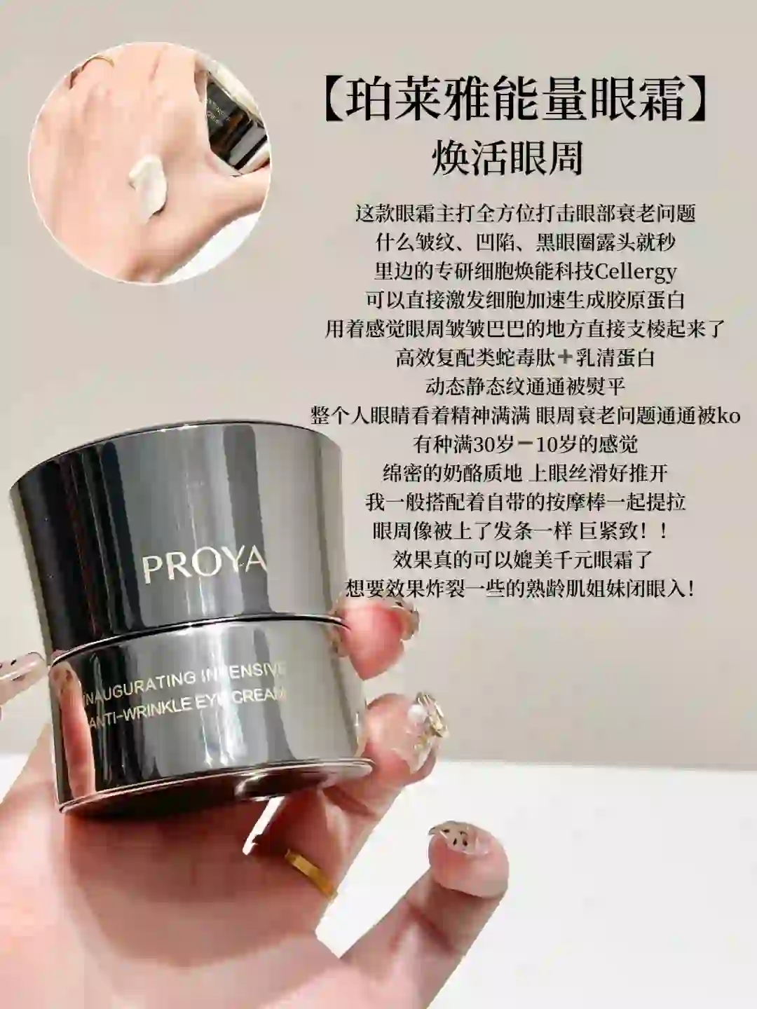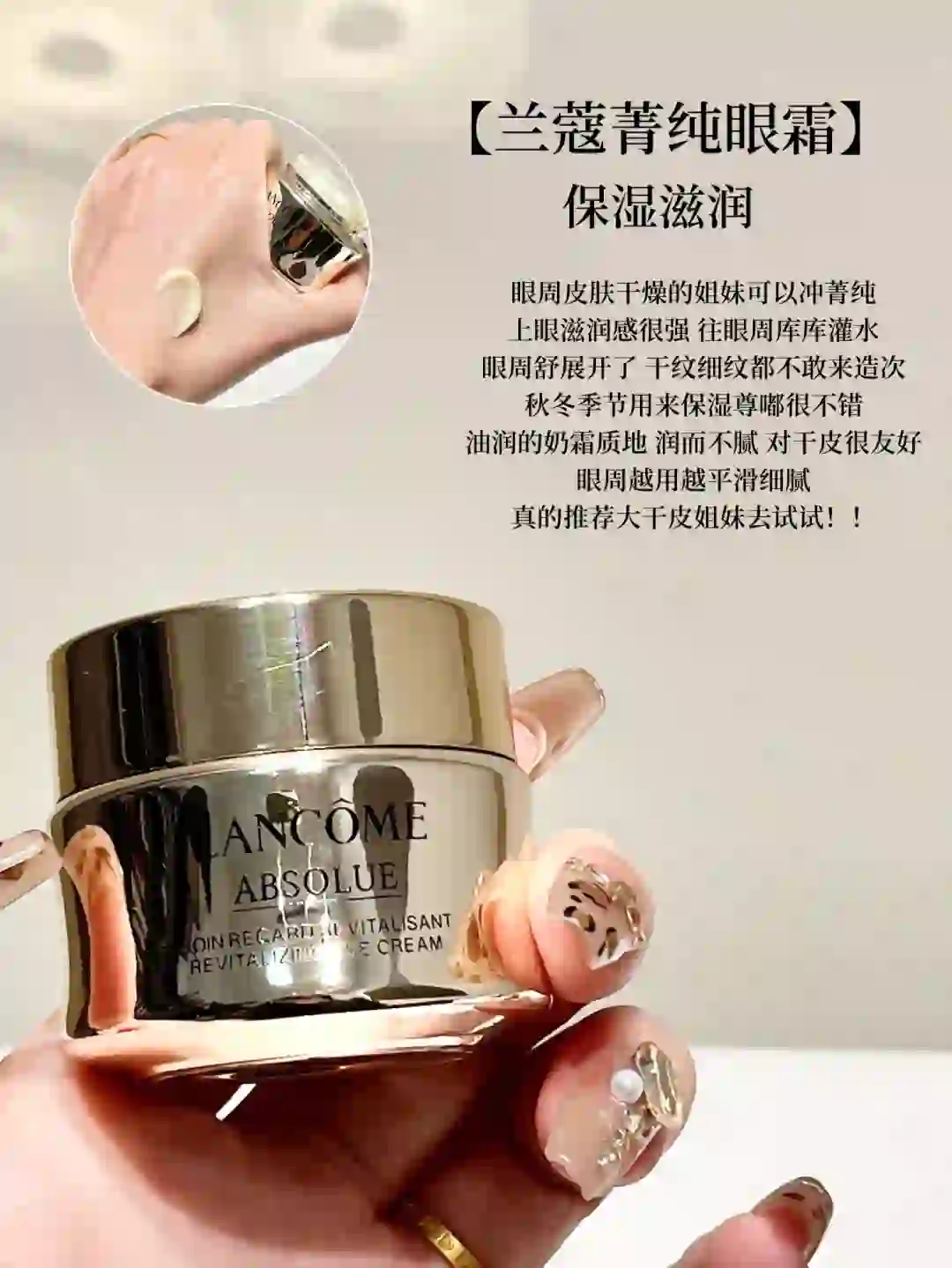 很多姐妹对于眼霜的选择上真的抓耳挠腮 市面上眼霜这个品真属于是花花世界迷人眼了 作为一个用过N多眼霜的本人有必要给各位家人拨一下迷雾啦 分享四瓶我用过的效果拿得出手的眼霜 大家根据不同需求就ok喽~ - ▫️珀莱雅能量眼霜 这款眼霜主打全方位打击眼部衰老问题 什么皱纹、凹陷、黑眼圈露头就秒 里边的专研细胞焕能科技Cellergy 可以激发细胞加速生成胶原蛋白 用着感觉眼周皱皱巴巴的地方直接支棱起来了 高效复配类蛇毒肽➕乳清蛋白 动态静态纹通通被熨平 整个人眼睛看着精神满满 眼周衰老问题通通被ko 有种满30岁➖10岁的感觉 绵密的奶酪质地 上眼丝滑好推开 我一般搭配着自带的按摩棒一起提拉 眼周像被上了发条一样 巨紧致!! 效果真的可以媲美千元眼霜了 想要效果炸裂一些的熟龄肌姐妹闭眼入! ▫️海蓝之谜浓缩眼霜 经常熬夜的bb可以看看它 修护和淡化黑眼圈的能力真的不赖! 主要成分神奇活性精萃 对眼周问题改善力很不错 酸奶质地 上眼润润的 肤感很清爽 眼周用着看起来饱满润亮 有修护和去黑眼圈需求的姐妹可以入 ▫️赫莲娜黑绷带眼霜 这款很适合脆皮敏皮 主打修护紧致 眼周做完美美项目的时候我会用上它 面霜同款玻色因成分 温和高效 很适合脆弱的眼周肌肤 质地比较像厚重的奶油 黏腻油润 上脸一定要先乳化 再配合按摩手法吸收 油皮姐妹用起来会有点油 更推荐干皮的姐妹用哦 ▫️兰蔻菁纯眼霜 眼周皮肤干燥的姐妹可以冲菁纯 上眼滋润感很强 往眼周库库灌水 眼周舒展开了 干纹细纹都不敢来造次 秋冬季节用来保湿尊嘟很不错 油润的奶霜质地 润而不腻 对干皮很友好 眼周越用越平滑细腻 真的推荐大干皮姐妹去试试!!