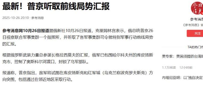 2025年10月26日,俄乌前线传重磅!   普京直接现身俄军特别军事行动指挥部