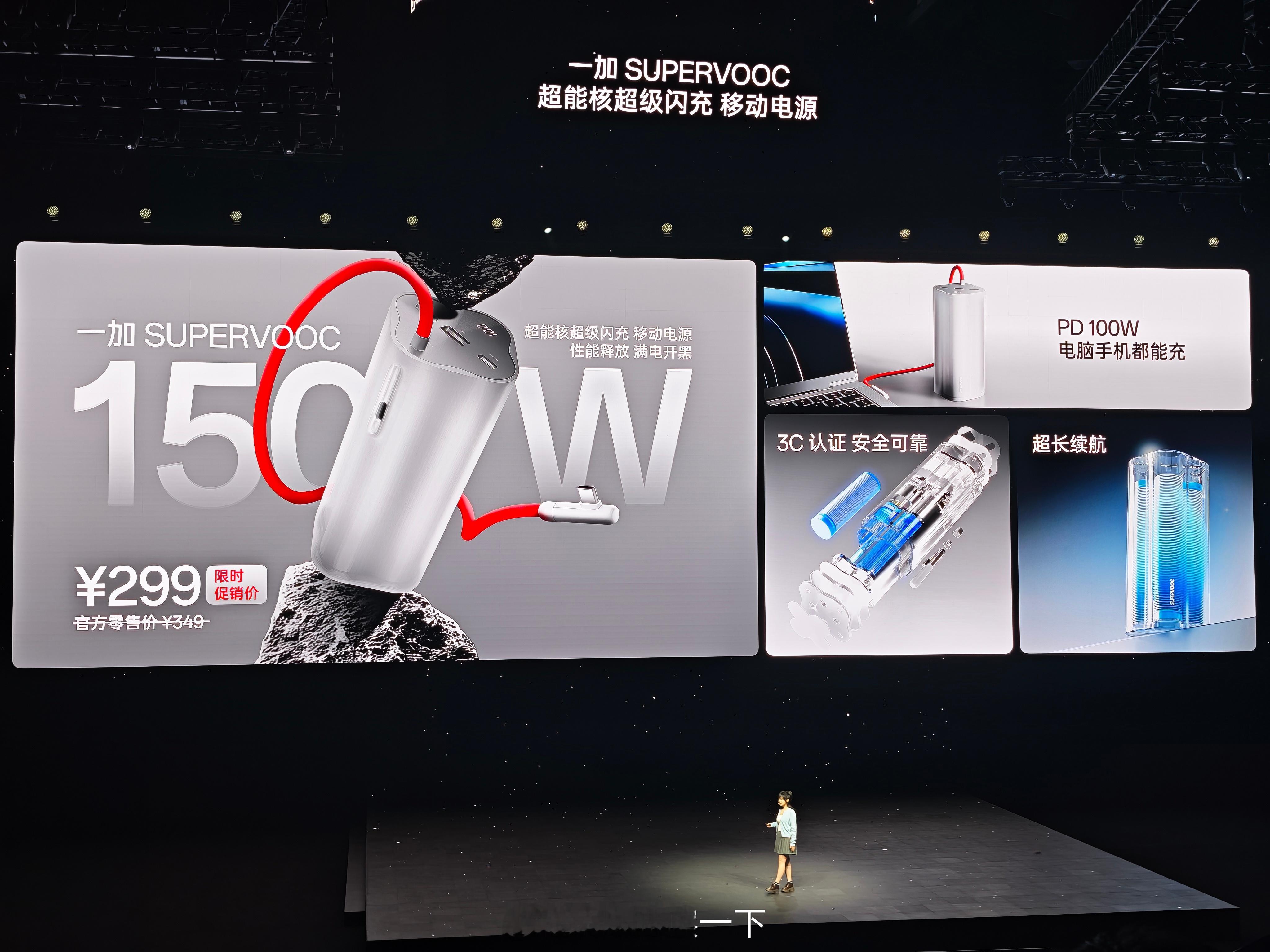 一加150W 超能核超级闪充移动电源,3C认证,安全可靠,售价仅需299元。