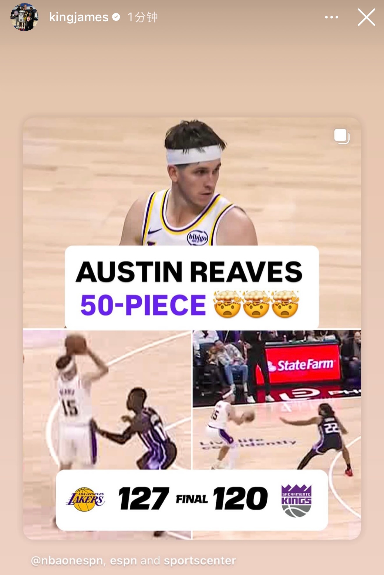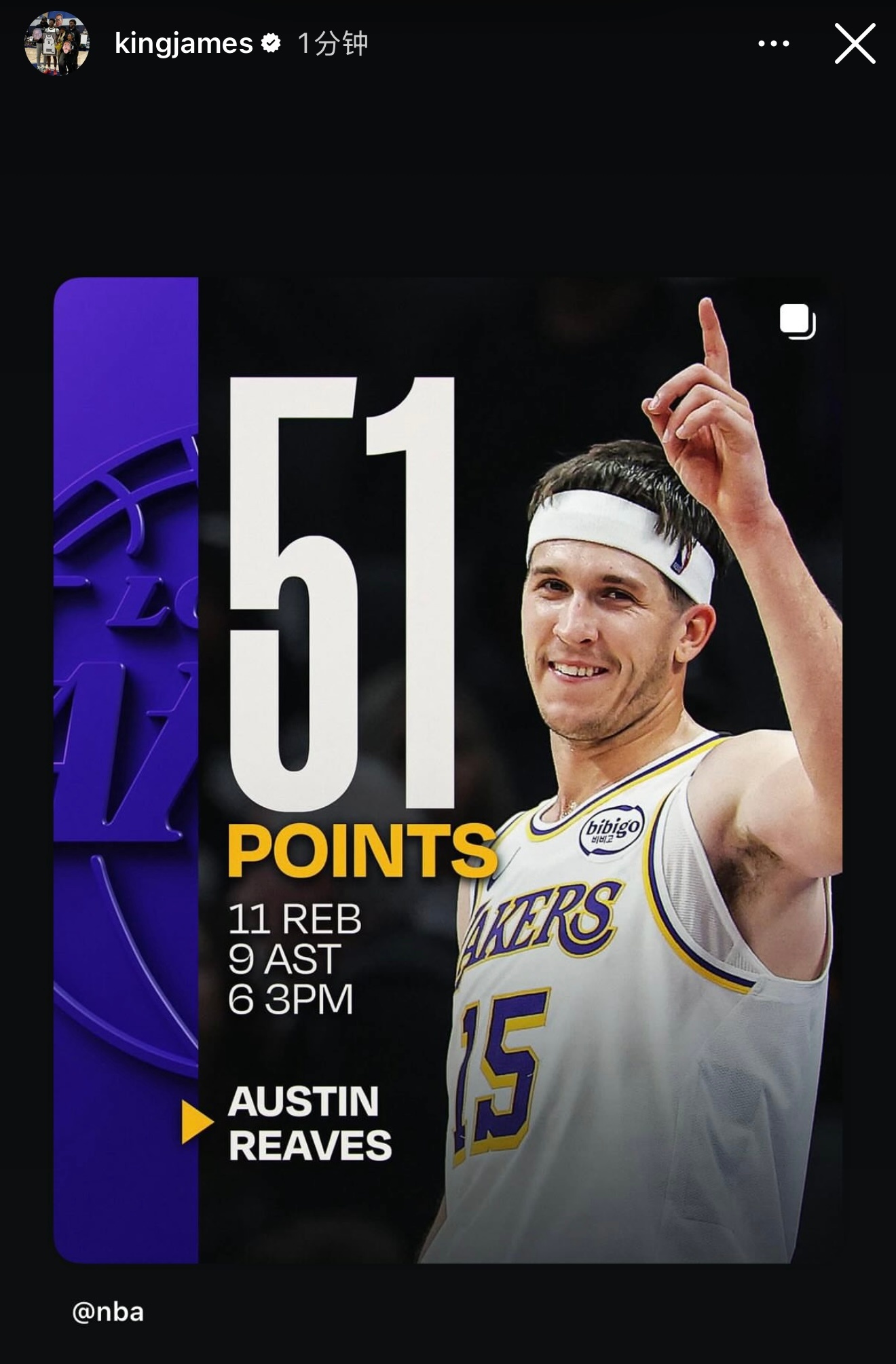 洛杉矶时间早上6点,詹姆斯起床了,更新多条动态为里夫斯打call[打call]