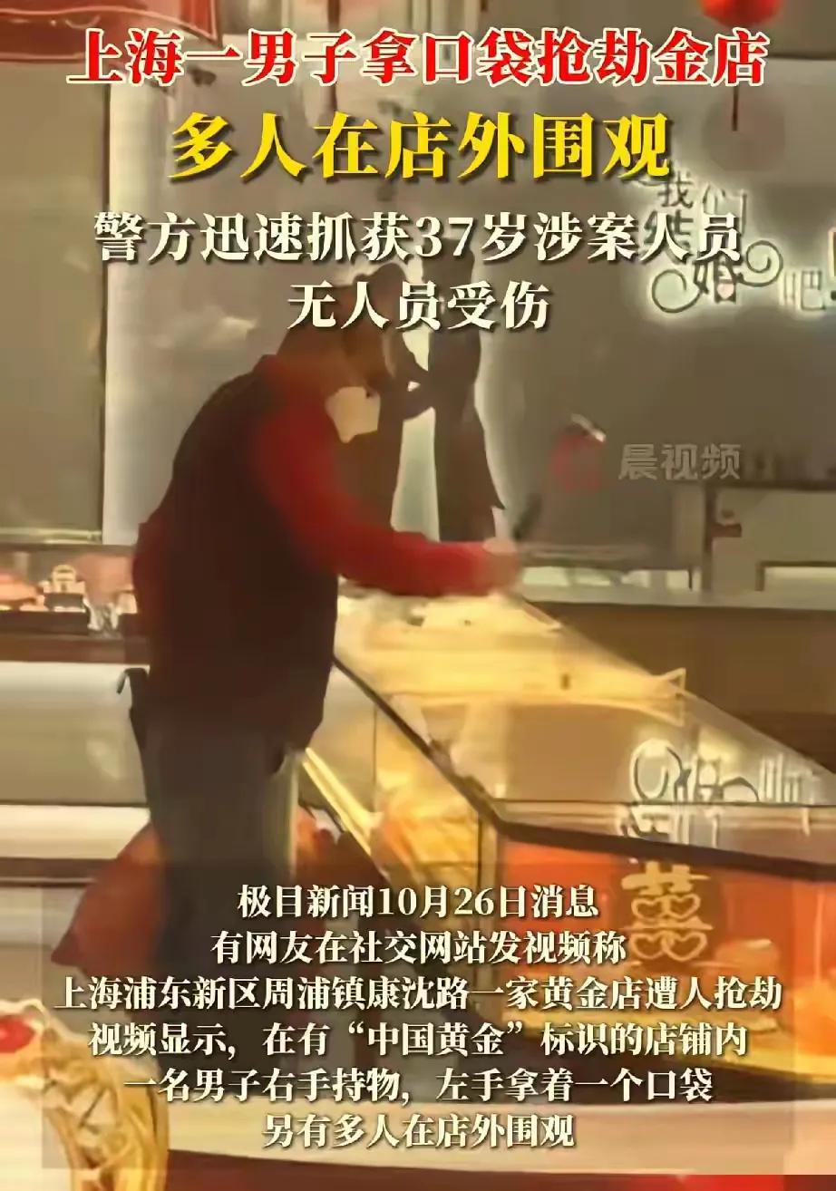 心痛❤️‍🩹成年人的世界,何来“容易”二字? 看完上海这起金店抢劫事件,我的鼻子不禁一阵阵酸楚。 10月26号上午,在周浦的一家中国黄金店内,37岁的曹某砸向柜台,右手持物猛砸,左手提着空袋子。即便保安赶来,他也未曾逃跑,直至民警到场将其直接带走。想来他并非真的想抢钱,许是外界的压力令他不堪重负,不过是想进入警察局稍作休息,吃上一口热饭,睡上一个安稳觉罢了。 成年人的苦楚,即便崩溃,也不敢放声大哭,甚至连停下来喘口气的念头都不敢有。