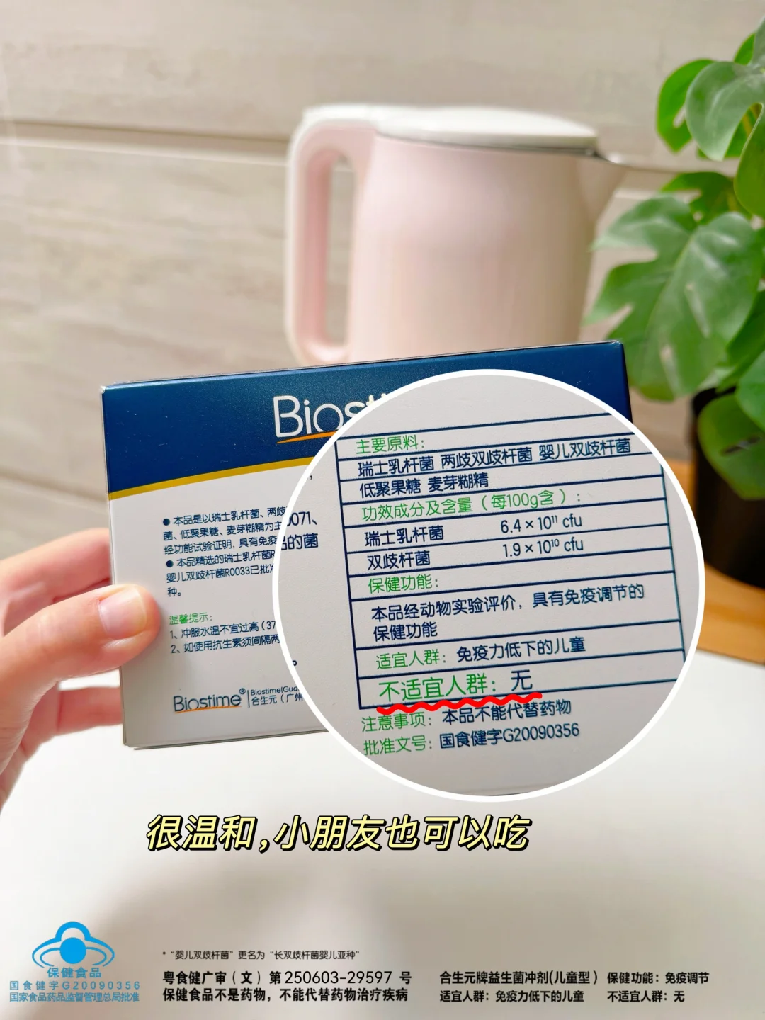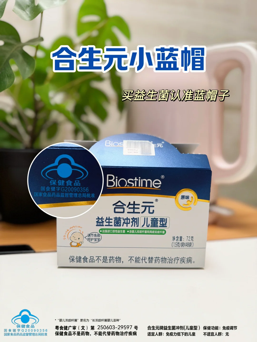 她推荐了合生元小蓝帽,跟我说这是蓝帽子的,没啥F作用。而且温和得很,小月龄宝宝👶🏻喝也没问题,毕竟宝宝现在特殊时期,还是得吃点放心的