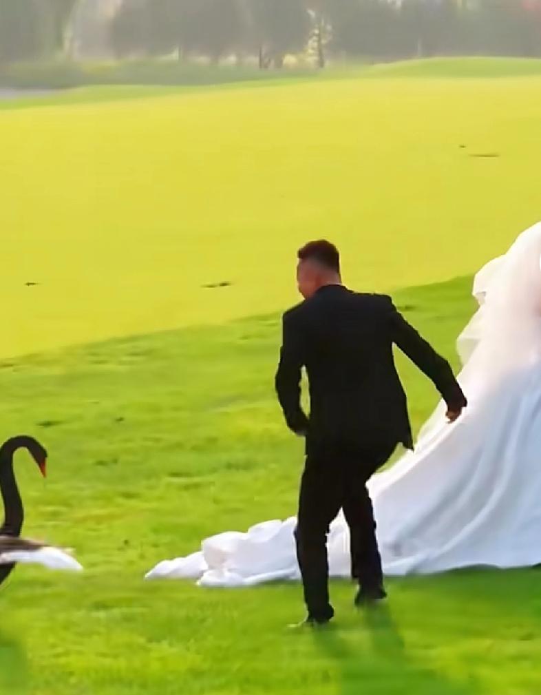 这应该是最好的祝福 山东一对新人在草坪上拍摄婚纱照,当时的天气格外的好,亲朋好友也送来了祝福的眼光 正当新郎准备亲吻新娘的时候,从不远处来了一只黑天鹅 在不停的追赶新娘,新娘一边奔跑,新郎一边在阻止 在这不经意的瞬间,摄影师摁下了快门,拍摄下了最美的瞬间 这可能就是无意间两人获得的最美好的祝福 婚礼拍照 唯美婚纱婚庆 婚纱婚纱照 婚礼摄影 婚纱摄影婚礼 婚礼即景摄影 喜拍婚纱摄影