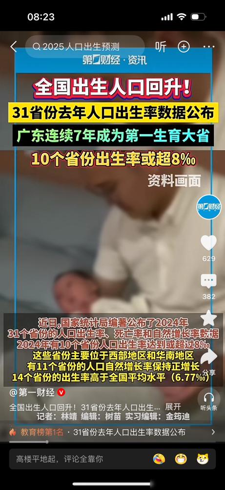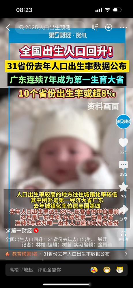 2025年都快结束了,现在才公布2024年的生育统计结果。广东已经连续7年出生人口增长第一了。 广东这数据,看着挺猛,其实里面门道多。潮汕人能生的老印象,现在看真不灵了。有钱的和没钱的,成了生娃主力,中间那一大群人反而最犹豫。生一个就够,压力太大了。 现在养孩子不是添双筷子的事。从奶粉尿布到兴趣班,再到以后的学区房,哪一样不是真金白银。中间收入的家庭算得最明白,投入太高,回报太远,干脆就谨慎了。反倒是两头,想法不一样。 有钱的家庭,多生几个完全没负担,资源够,甚至觉得孩子多家族更兴旺。经济压力小的家庭,有时候考虑的是眼前,多个孩子多个劳力,或者有传统的养儿防老观念。这种分化,不光广东,全国好多地方都差不多。 数据公布得这么晚,也让人纳闷。都2025年底了,才看明白2024年的情况,信息是不是太滞后了点。人口是大事,统计应该更及时透明才对,让大家都能早点看到趋势,心里有个数。 这么看,单靠鼓励生育的口号,效果恐怕有限。关键还是要把大家生娃养娃的实际困难解决了。比如教育成本能不能降一点,住房压力能不能小一点。这些现实问题不缓解,光喊话,中间阶层还是不敢生。 说到底,生不生,生几个,最终是每个家庭自己的选择。但社会的氛围和支撑很重要。广东的数据就像一个缩影,把现在的生育现状照得清清楚楚。趋势已经这样了,后续会怎么走,还得再看看。