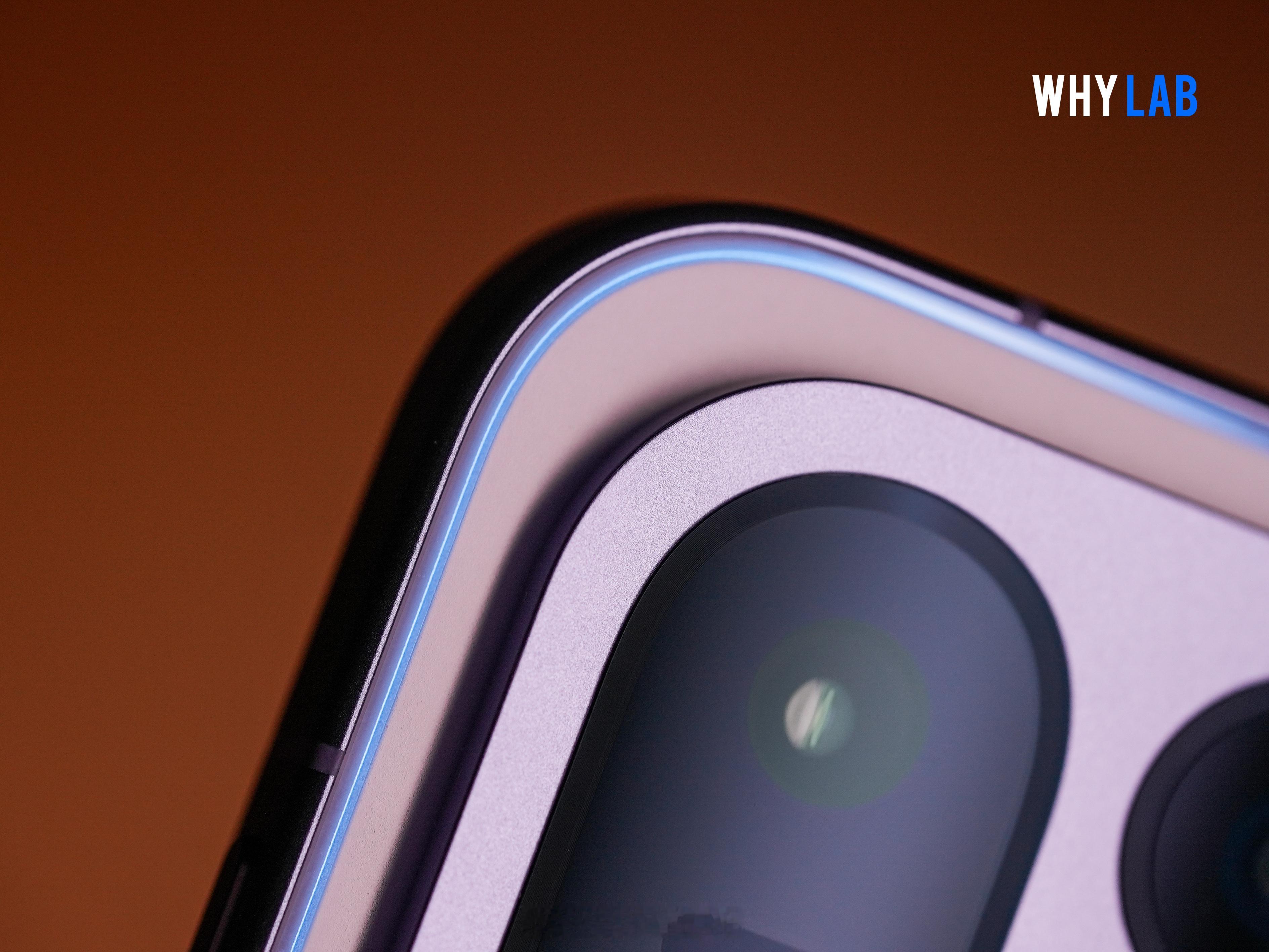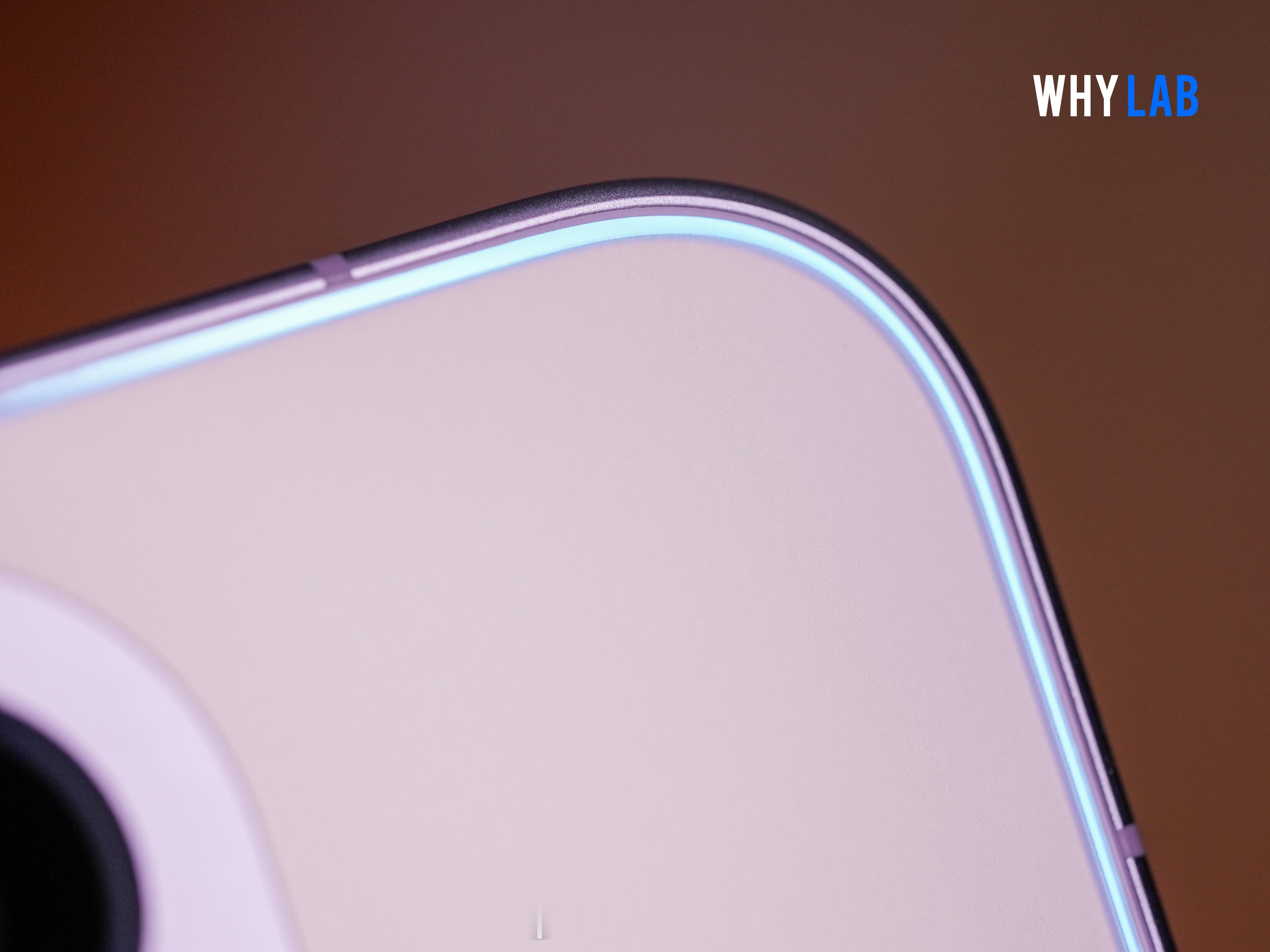虽然不是新鲜色,但这个「雾光紫」做的也很有意思,首发双维流光工艺,手机在倾斜时能够产生流动的白蓝色光束轨迹,电池盖四周有一圈类似唤出小布助手时的光圈,细节非常值得细品。