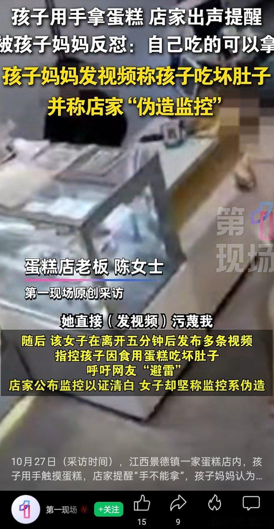 店员提醒别摸蛋糕遭妈妈发视频避雷