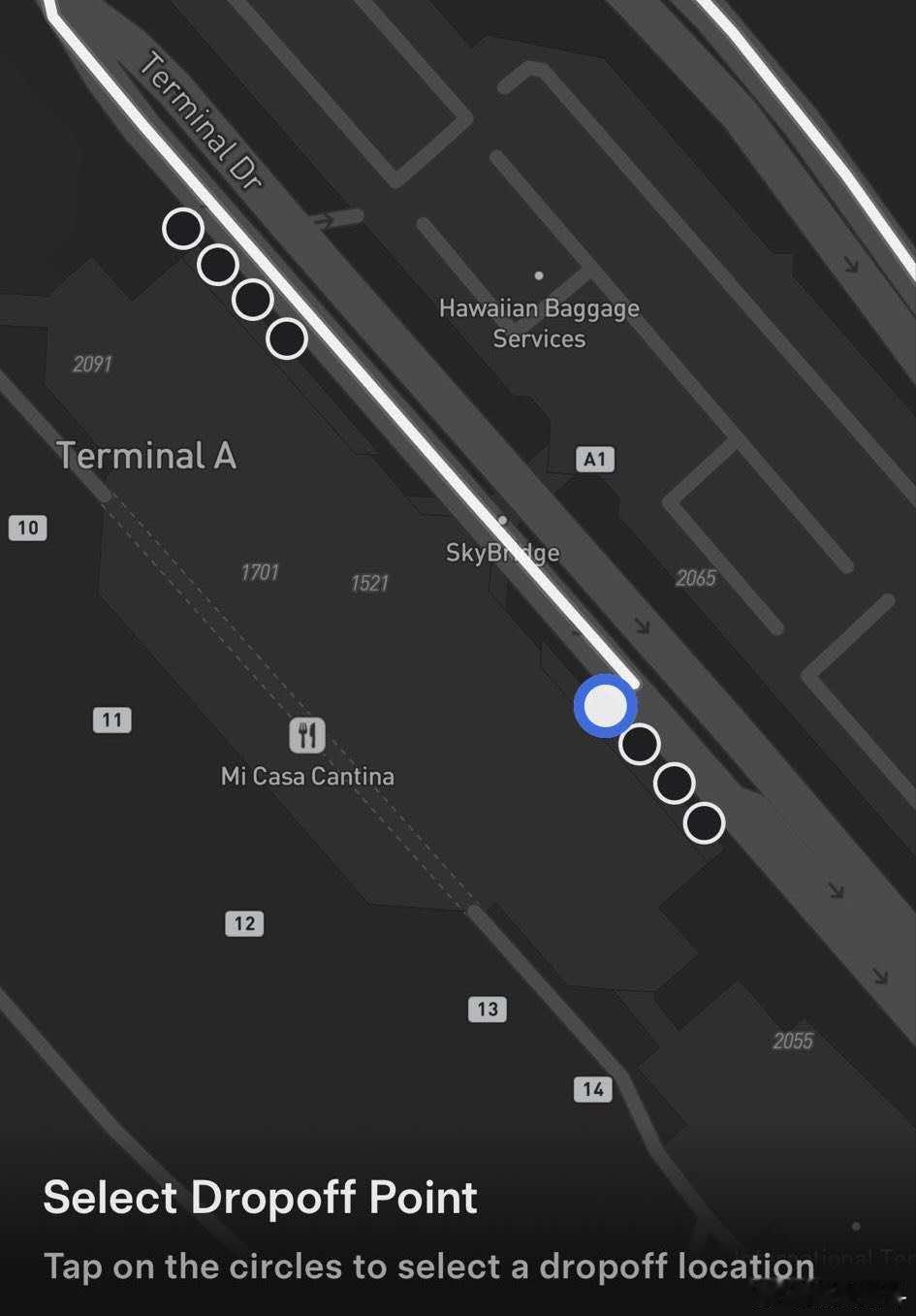 特斯拉Robotaxi服务现在已经延伸到圣何塞机场,并且可以根据航空公司自动选择航站楼和下车位置。特斯拉[超话]