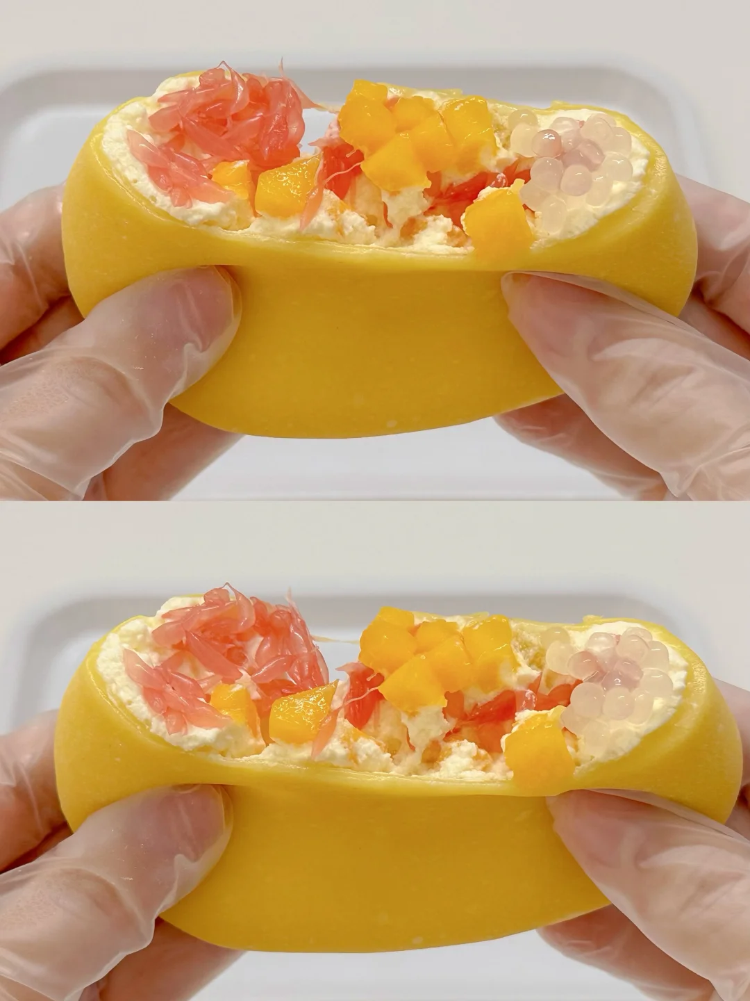 软糯拉丝的外皮搭配酸甜的芒果🥭和西柚